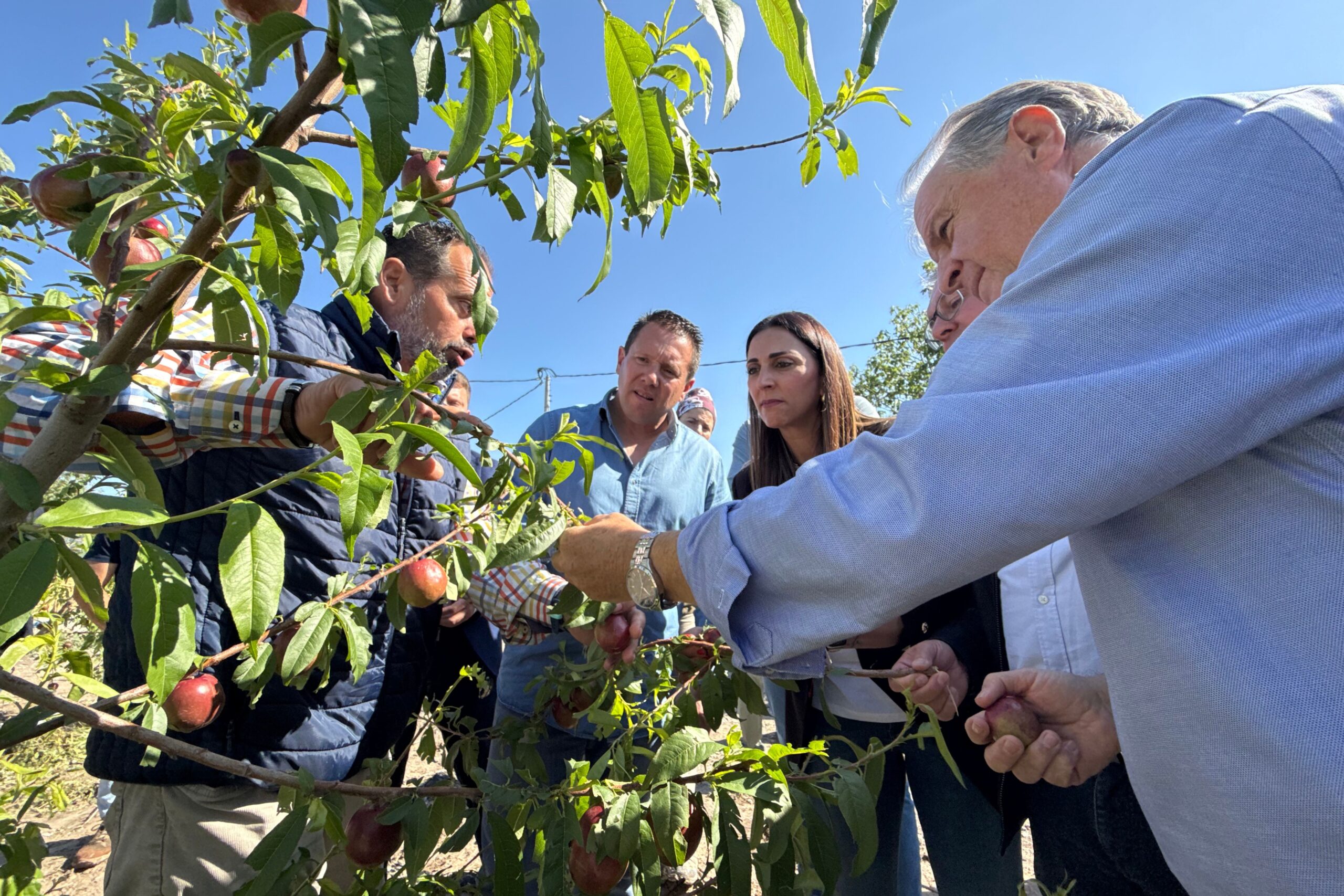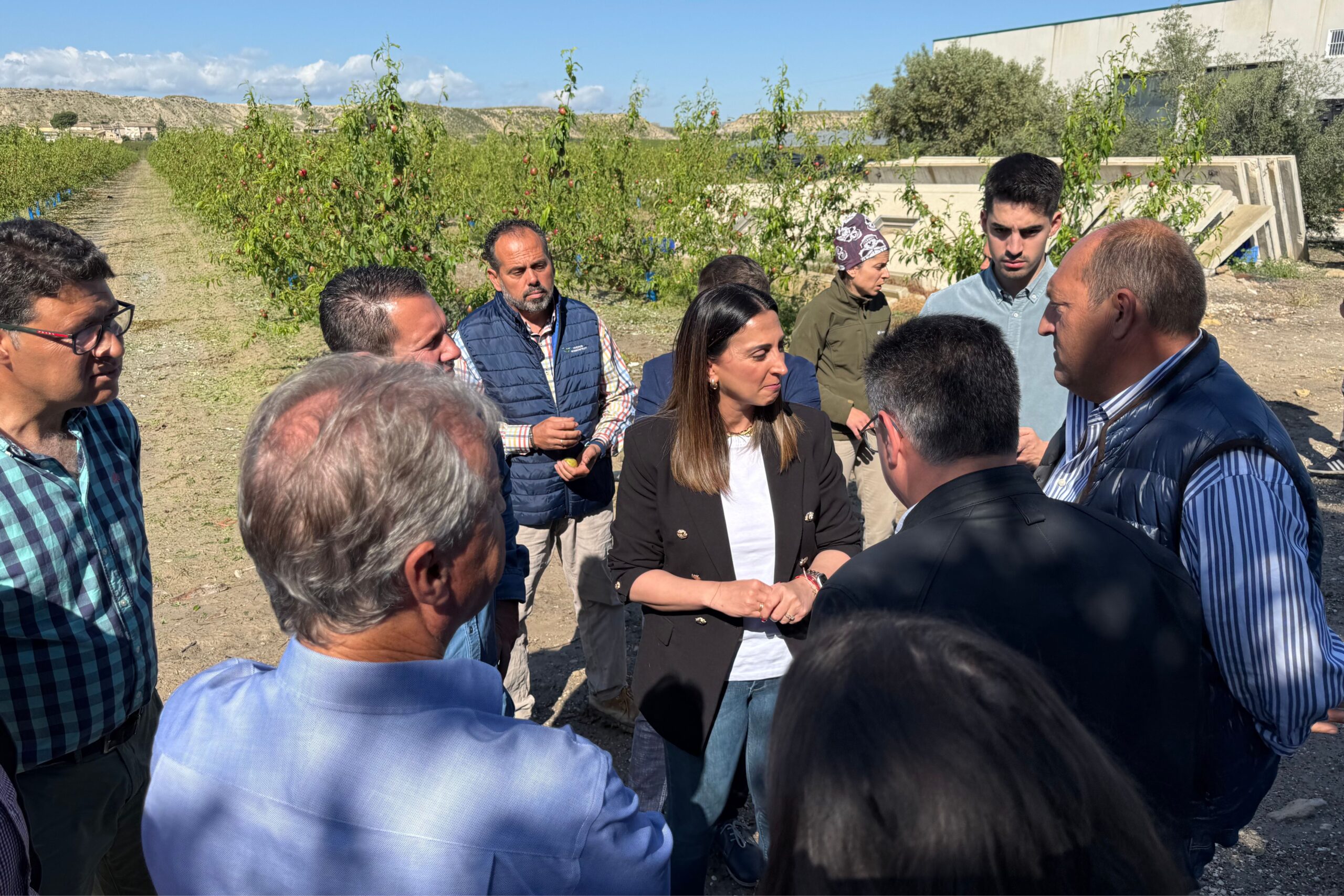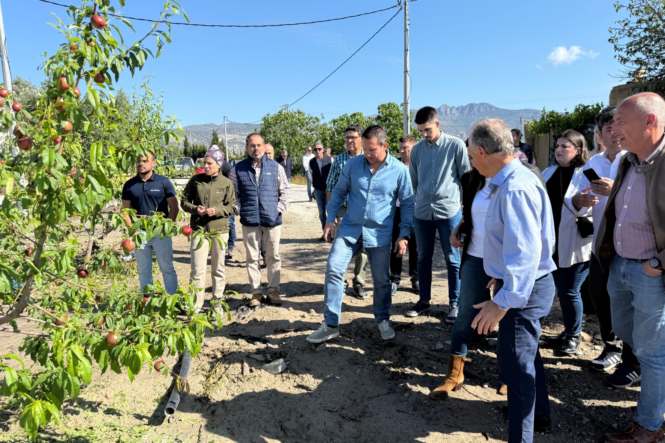 El alcalde de Mula, Juan Jesús Moreno, ha visitado esta mañana junto a la consejera de Agricultura, Ganadería y Desarrollo Rural, Sara Rubira, miembros de la corporación municipal, representantes de las principales cooperativas y organizaciones agrarias y agricultores locales, algunas de las fincas más afectadas por la fuerte granizada registrada ayer en Mula, especialmente en la pedanía de Yéchar.