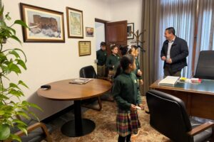 Esta mañana, el alcalde de Mula, Juan Jesús Moreno, ha recibido en el Ayuntamiento a un grupo de alumnos de 3º de primaria del Colegio Santa Clara, quienes han podido conocer de primera mano el papel de la administración local y el funcionamiento de los servicios municipales.