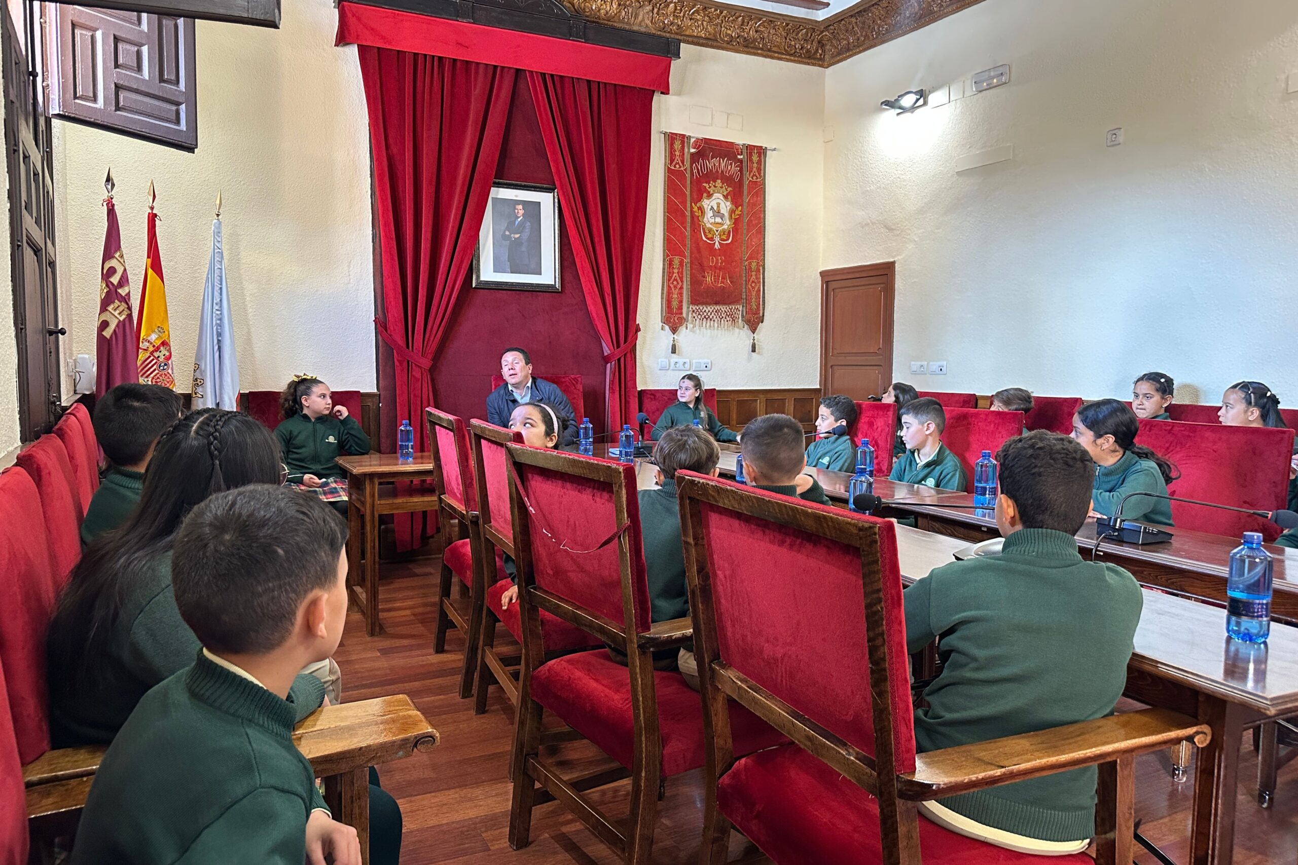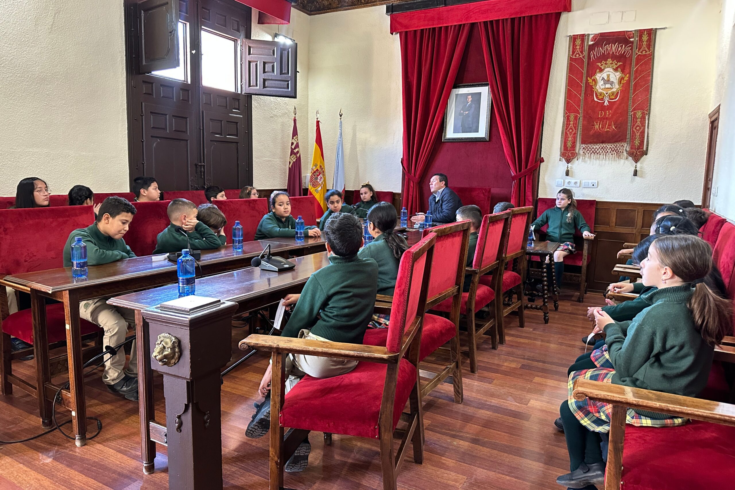 Esta mañana, el alcalde de Mula, Juan Jesús Moreno, ha recibido en el Ayuntamiento a un grupo de alumnos de 3º de primaria del Colegio Santa Clara, quienes han podido conocer de primera mano el papel de la administración local y el funcionamiento de los servicios municipales.