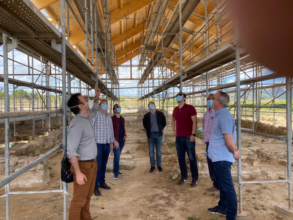 El alcalde de Mula, Juan Jesús Moreno, junto a los concejales de Urbanismo y de Cultura y Patrimonio Histórico, Francisco Javier Llamazares y Diego Boluda, han visitado el yacimiento junto con técnicos municipales para comprobar el estado de las obras. El arquitecto encargado así como el jefe de obras han estado explicando los detalles de las mismas.