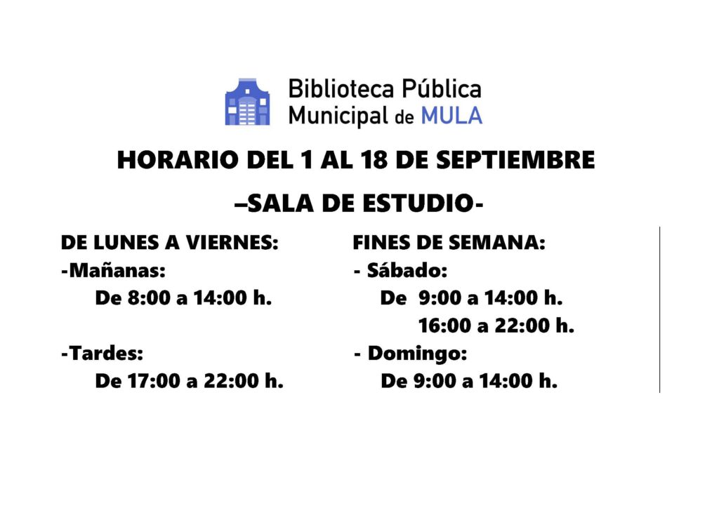 View Larger Image Biblioteca Municipal y Sala de estudio: Horario de septiembre Biblioteca y sala de estudio – Horario septiembre (.pdf) Comparte esto: Comparte en Facebook (Se abre en una ventana nueva) Facebook Compartir en X (Se abre en una ventana nueva) X Compartir en Telegram (Se abre en una ventana nueva) Telegram Compartir en WhatsApp (Se abre en una ventana nueva) WhatsApp Imprimir (Se abre en una ventana nueva) Imprimir Rosario Martínez2021-05-12T20:11:33+02:00miércoles, 4 septiembre 2019|cultura|