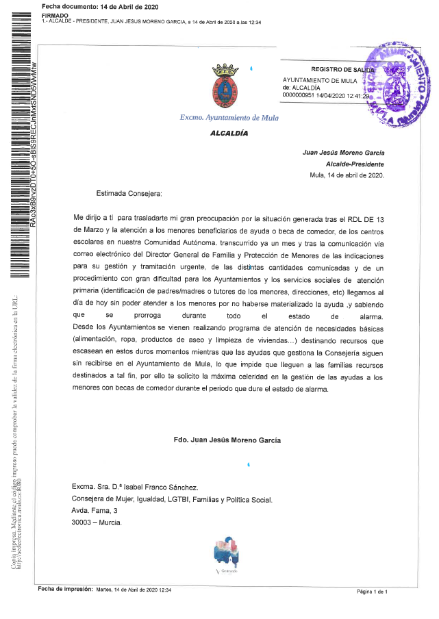 La Concejalía de Política Social del Excmo. Ayuntamiento de Mula informa que son numerosas las aportaciones y donaciones que de distintos colectivos, asociaciones, empresas, comercios y particulares, se están realizando al Programa Municipal de Alimentos de Mula, desde el inicio de la crisis sanitaria derivada del virus COVID-19. A continuación, se detallan algunas de estas [...]
