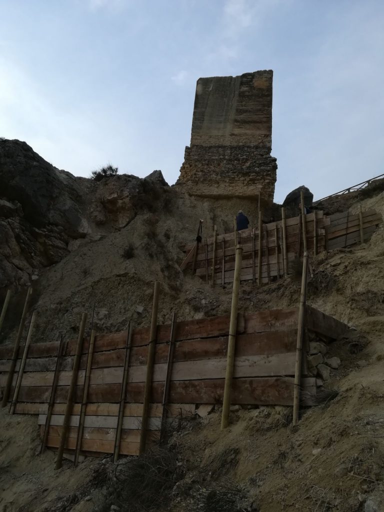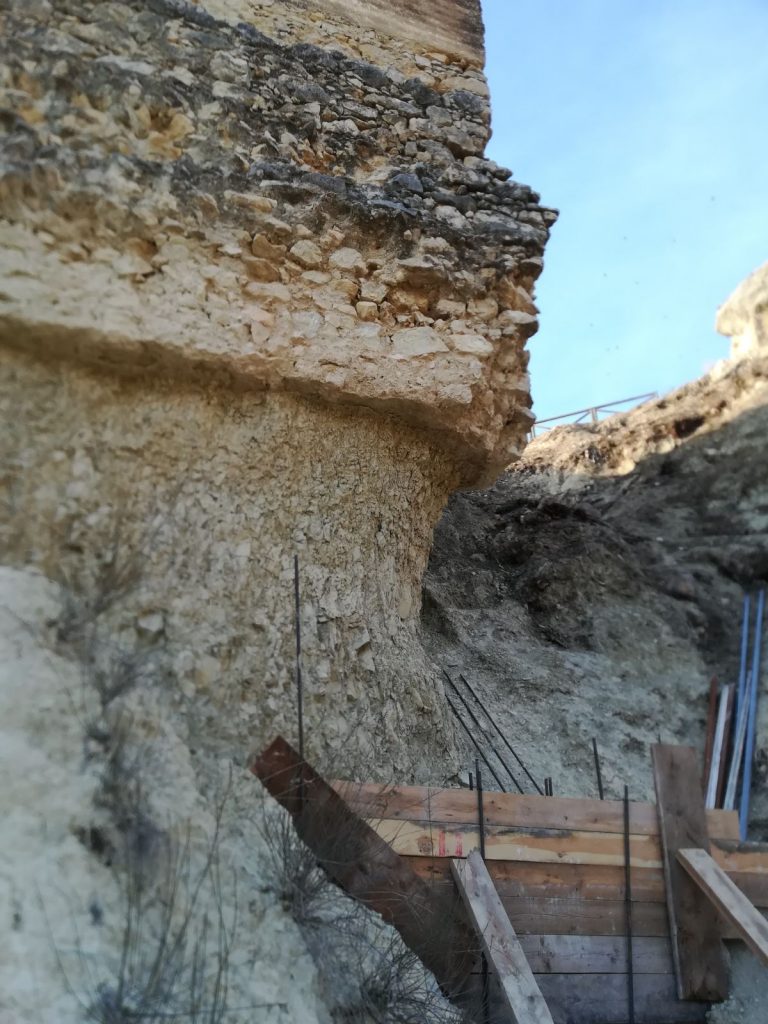 La Concejalía de Urbanismo y Patrimonio Histórico está llevando a cabo la obra de apuntalamiento y recalce de la torre oriental de la muralla medieval de la ciudad, situada sobre el barrio del Puntarrón.