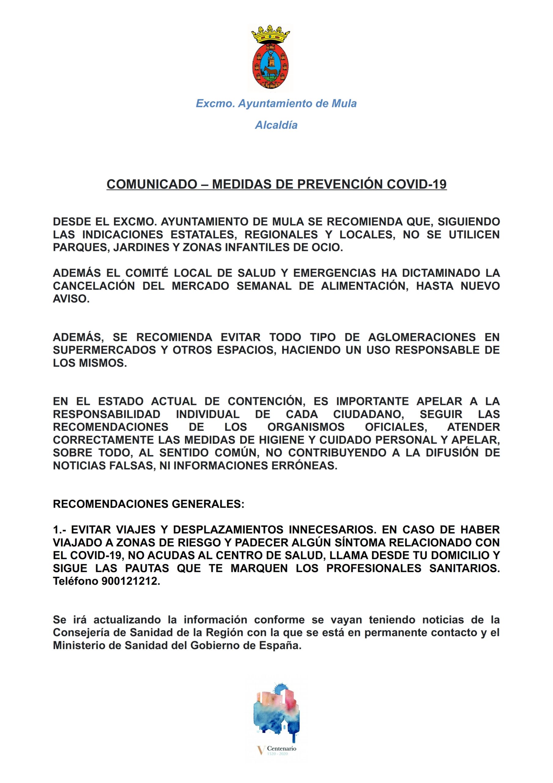 View Larger Image Comunicado – Medidas de prevención COVID-19 Comparte esto: Comparte en Facebook (Se abre en una ventana nueva) Facebook Compartir en X (Se abre en una ventana nueva) X Compartir en Telegram (Se abre en una ventana nueva) Telegram Compartir en WhatsApp (Se abre en una ventana nueva) WhatsApp Imprimir (Se abre en una ventana nueva) Imprimir Rosario Martínez2021-05-12T20:09:54+02:00viernes, 13 marzo 2020|ayuntamiento, coronavirus|