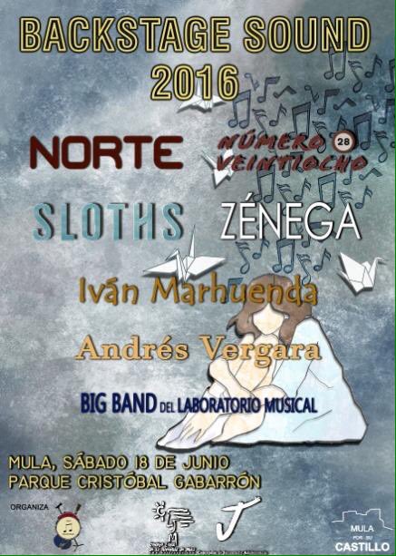 La Concejalía de Juventud y Adolescencia del Excmo. Ayuntamiento de Mula informa que la Asociación Juvenil Backstage organiza un año más el Backstage Sound. Este concierto se realizará el 18 de junio en el Parque Cristobal Gabarrón y en el intervendrán 7 artistas y grupos locales. Intervendrán NORTE, NUMERO 28, SLOTHS, ZÉNEGA, ANDRÉS VERGARA, IVAN MARHUENDA Y BIG BAND DEL LABORATORIO MUSICAL.