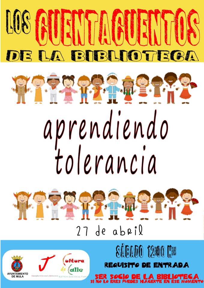 View Larger Image Cuentacuentos en pedanías y en la Biblioteca Municipal: «Aprendiendo tolerancia» – 27 de abril Comparte esto: Comparte en Facebook (Se abre en una ventana nueva) Facebook Compartir en X (Se abre en una ventana nueva) X Compartir en Telegram (Se abre en una ventana nueva) Telegram Compartir en WhatsApp (Se abre en una ventana nueva) WhatsApp Imprimir (Se abre en una ventana nueva) Imprimir Rosario Martínez2021-05-12T20:11:57+02:00jueves, 25 abril 2019|juventud y adolescencia|