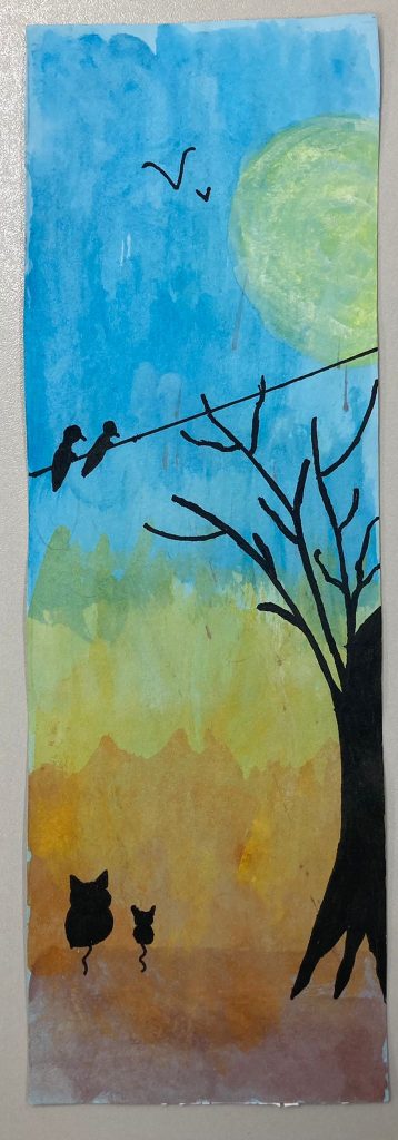– Marcapáginas “La tarde de otoño”. Autora: Alba Huertas León, de siete años y alumna de 2º de Primaria del CEIP Ntra. Sra. del Rosario, de Fuente Librilla.