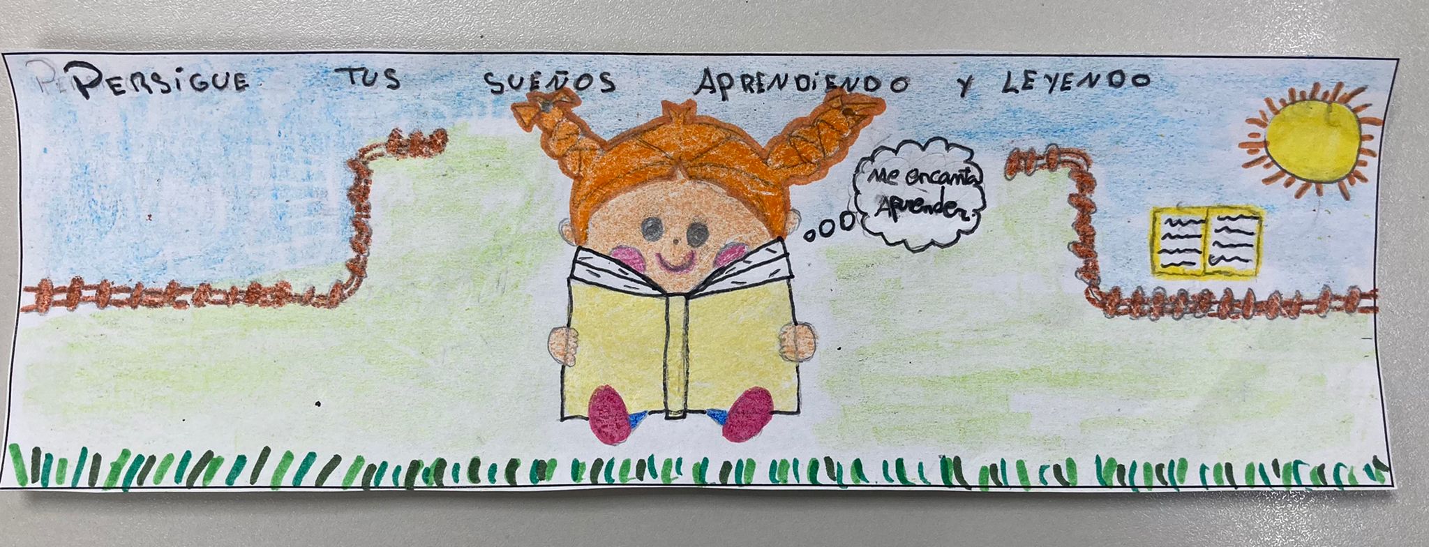 – Marcapáginas “Persigue tus sueños aprendiendo y leyendo”. Autora: Desiré Pastor García, de nueve años y alumna de 5º de Primaria del CEIP Florentino Bayona Abenza, de Mula.