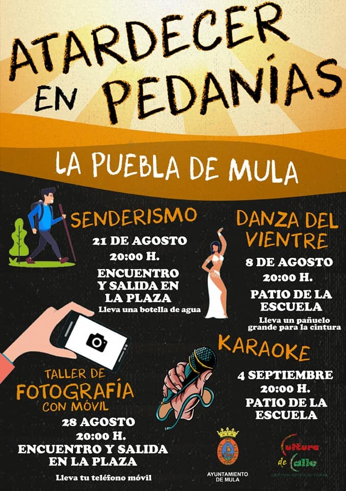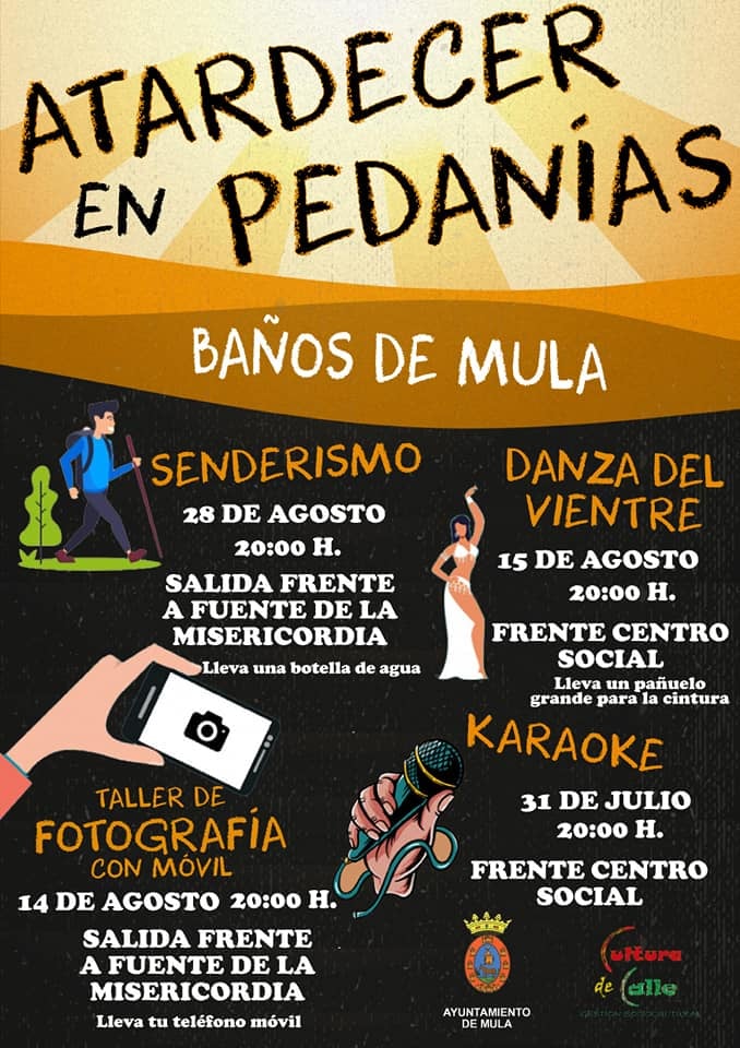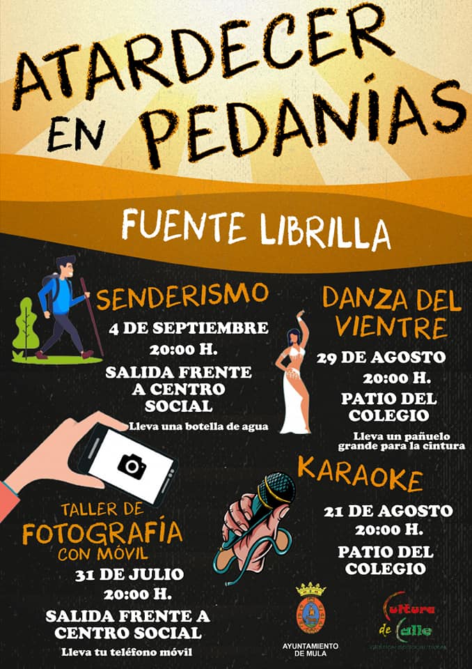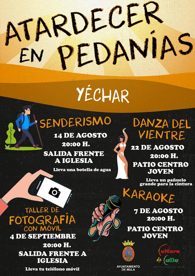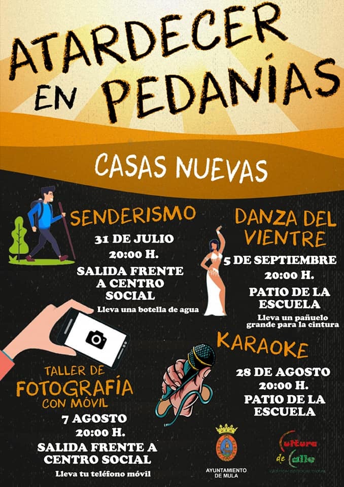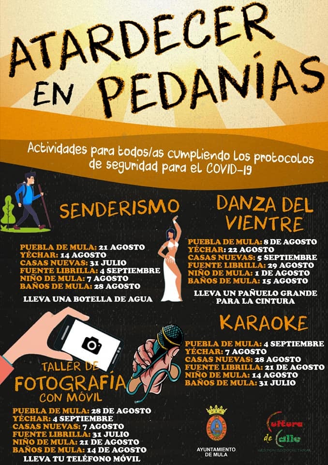Las circunstancias especiales de estos meses estivales a consecuencia del Covid-19 está siendo dura para el ocio, el deporte y la cultura, especialmente en las zonas más rurales, por ello el va poner en marcha este programa de actividades en pedanías para paliar esta situación de una manera segura y dinámica, con actividades abiertas a todo el público y que se adapta a todas las franjas de edad.