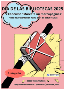 Con motivo del Día Internacional de las Bibliotecas 2025, la Biblioteca Pública Municipal de Mula ha convocado la quinta edición del concurso “Márcate un marcapáginas”, una iniciativa creativa con la que se invita a los muleños y muleñas a diseñar su propio punto de lectura.