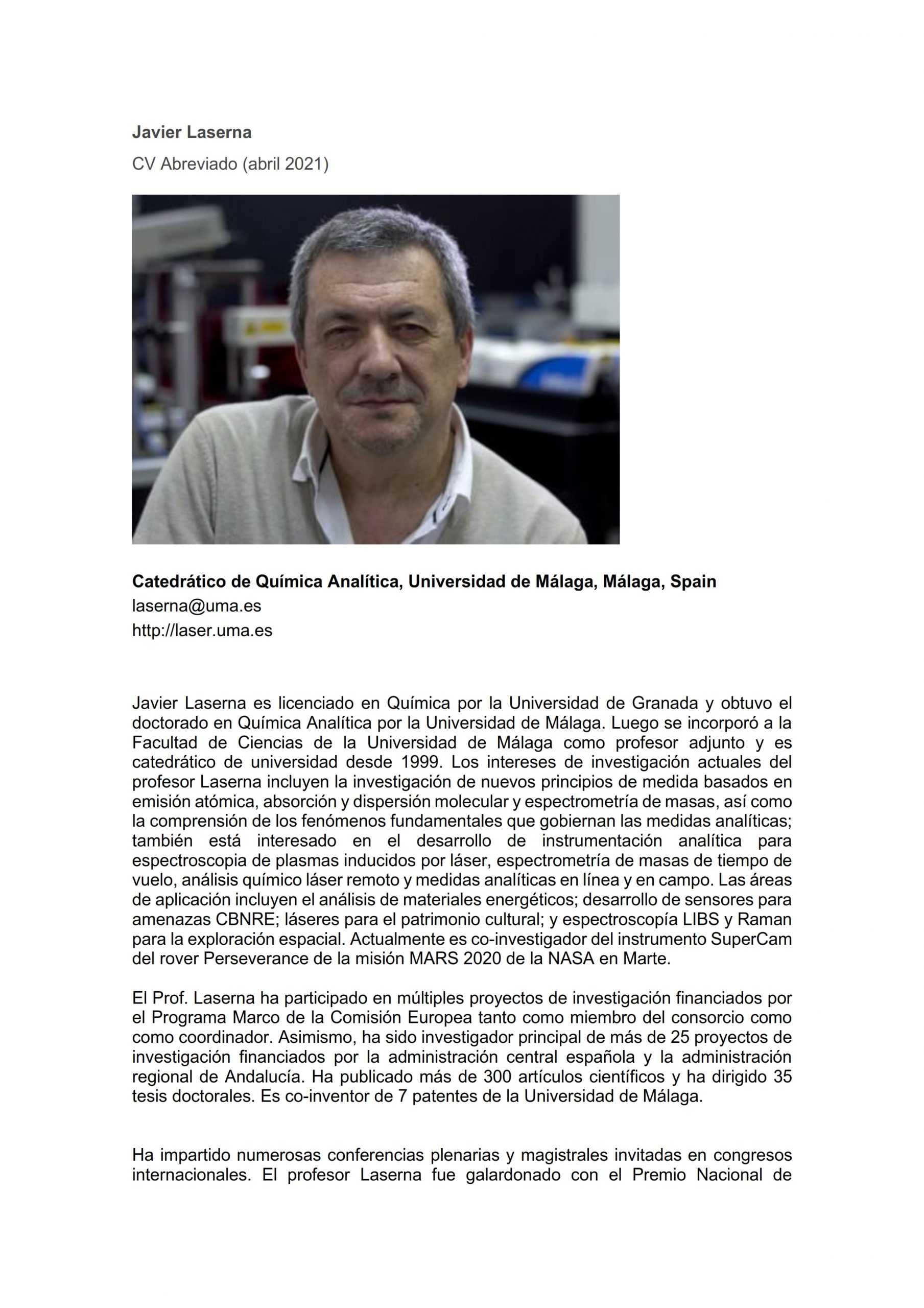 - Currículum de Javier Laserna