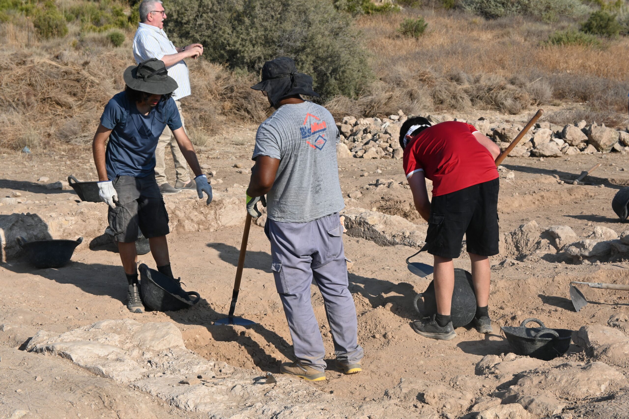 Durante el recorrido, se han revisado los trabajos que están llevando a cabo doce estudiantes de Arqueología procedentes de las universidades de Murcia, Granada y Autónoma de Madrid, coordinados por el CEPOAT–UMU, bajo la dirección del profesor José Javier Martínez, y que trabajan codo con codo con los arqueólogos Rafael González Fernández (catedrático de Historia Antigua de la UMU), José Antonio Zapata Parra (arqueólogo municipal) y Francisco Fernández Matallana.
