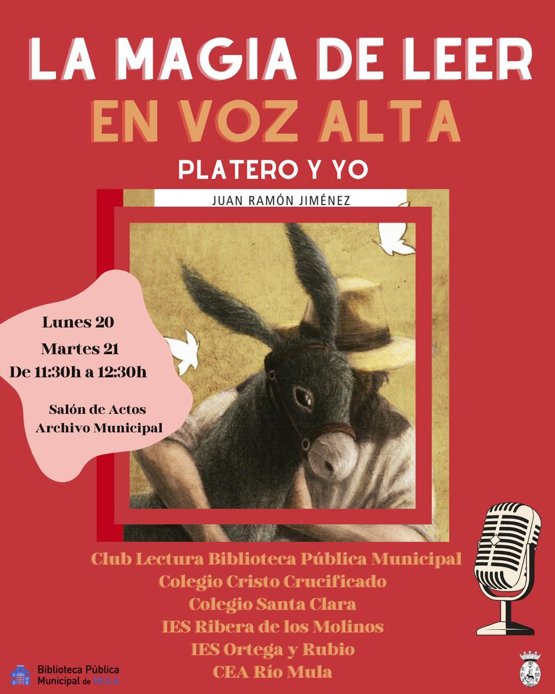 Entre las propuestas destacadas se encuentra la lectura continuada en voz alta de Platero y yo, de Juan Ramón Jiménez, y la campaña “Elige tu libro”, que se desarrollará en la Biblioteca Pública Municipal. El 23 de abril, Día del Libro, se celebrará la IV Feria del Libro Interescolar en la Plaza del Hospital, junto a otras actividades culturales y participativas.