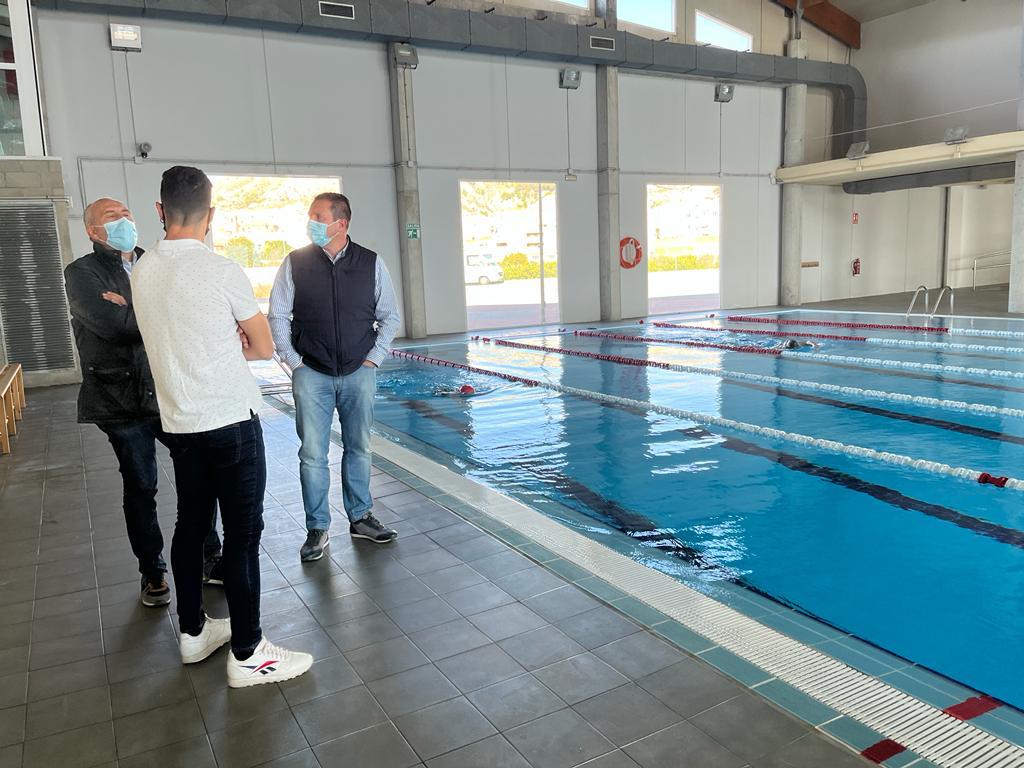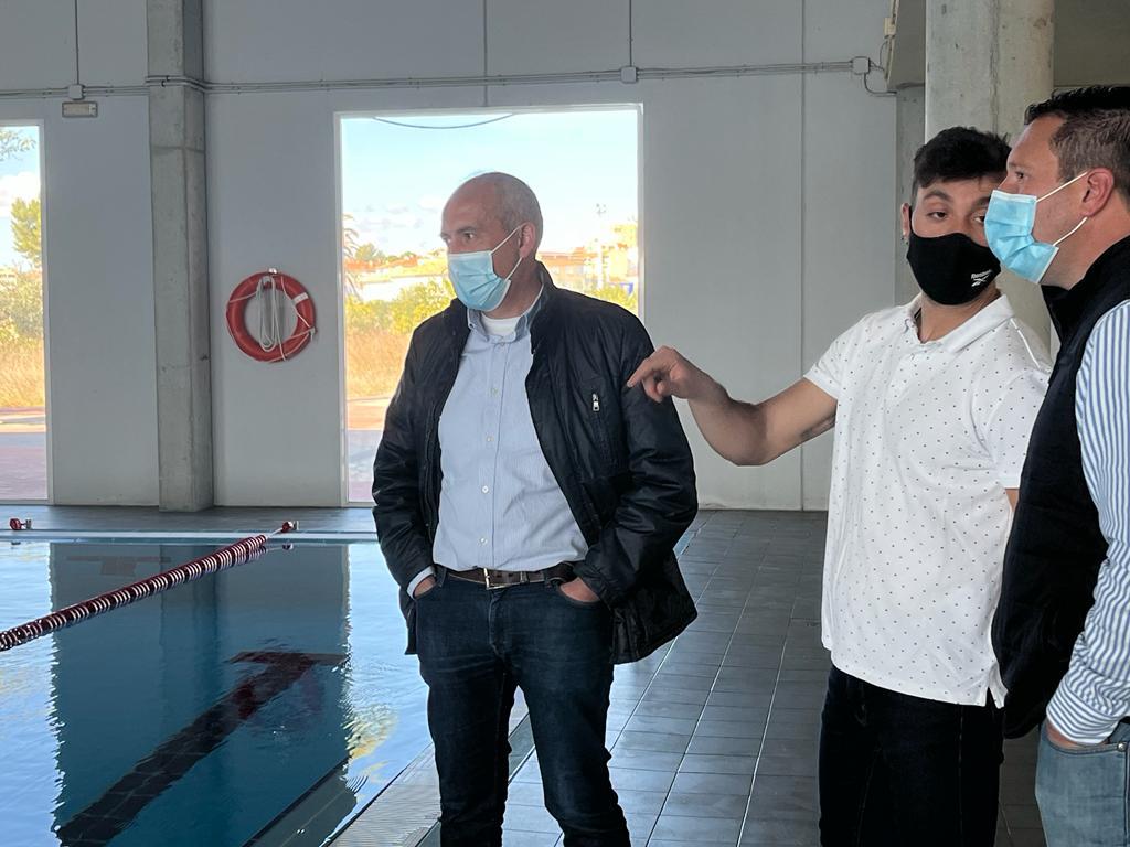 El Alcalde de Mula, Juan Jesús Moreno, y el Concejal de Deportes, Vicente López, han visitado las instalaciones de la piscina climatizada de Mula que abre hoy sus puertas.