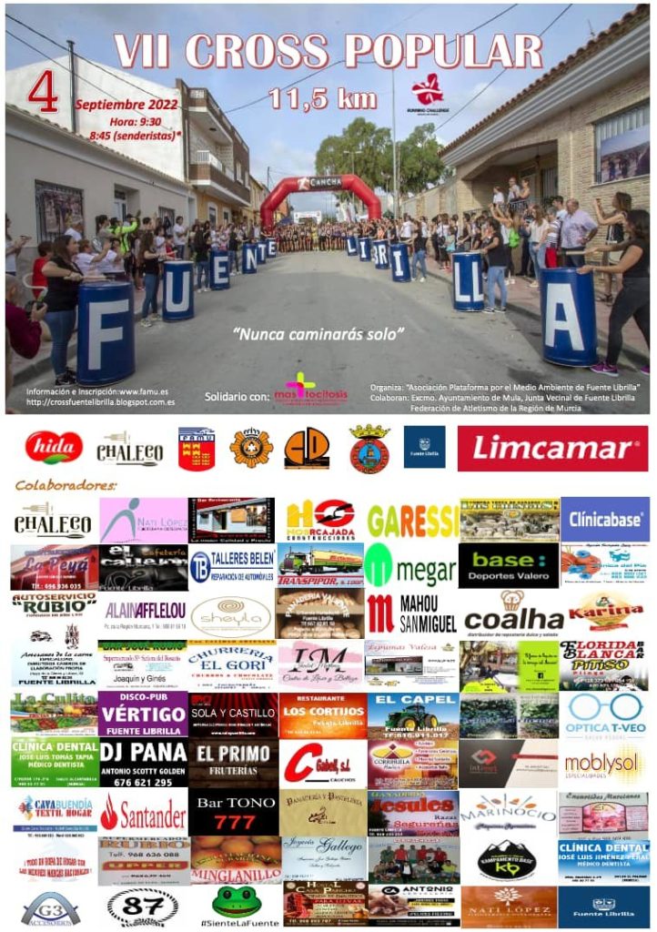 La cita será el próximo 4 de septiembre donde conocer Fuente Librilla y disfrutar de la naturaleza y el deporte, así como la diversión y las costumbres, a través de esta Cross Popular.