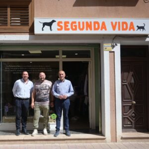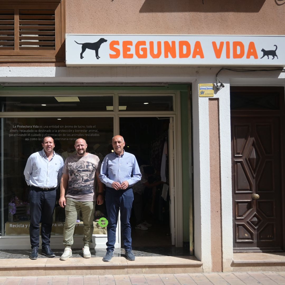 El concejal de Empleo, Vicente López, acompañado por el alcalde Juan Jesús Moreno, visitaron hoy la nueva tienda «Segunda Vida» de la Protectora Vida en Mula. Esta asociación sin ánimo de lucro ha inaugurado este nuevo espacio dedicado a la venta de artículos de segunda mano, con el objetivo de recaudar fondos destinados a la protección y bienestar animal.