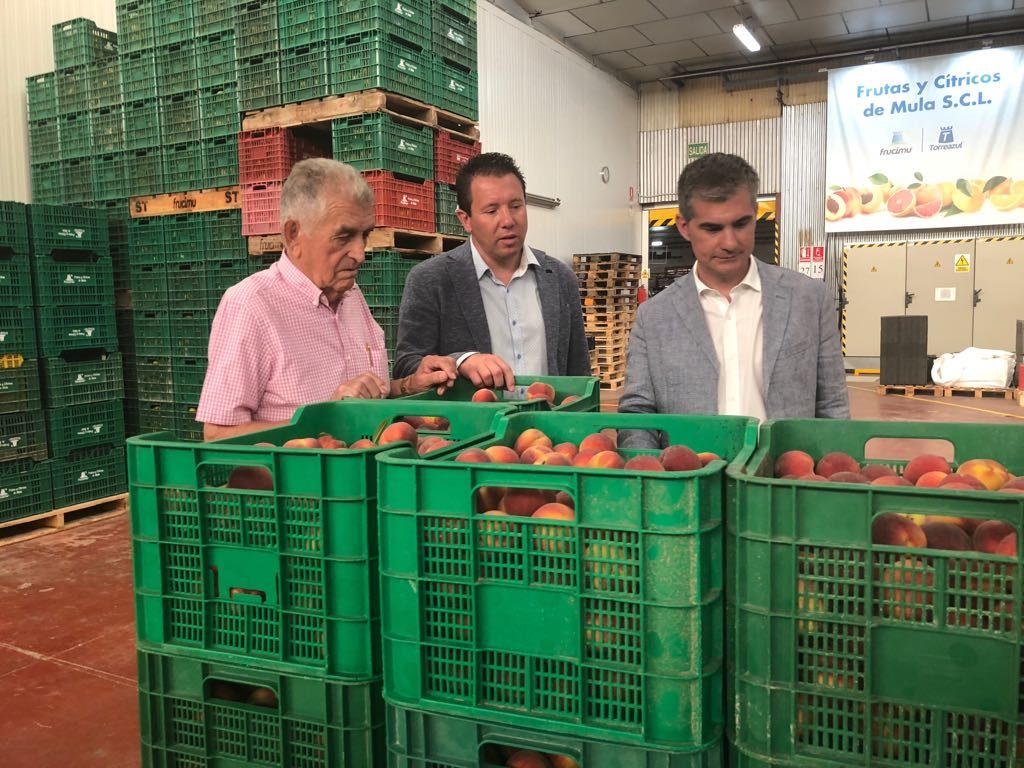 El Consejero de Agua, Agricultura, Ganadería y Pesca, Miguel Ángel del Amor, y el Alcalde-Presidente del Excmo. Ayuntamiento de Mula, Juan Jesús Moreno, han visitado, en la mañana de hoy, las instalaciones de Frutas y Cítricos de Mula.