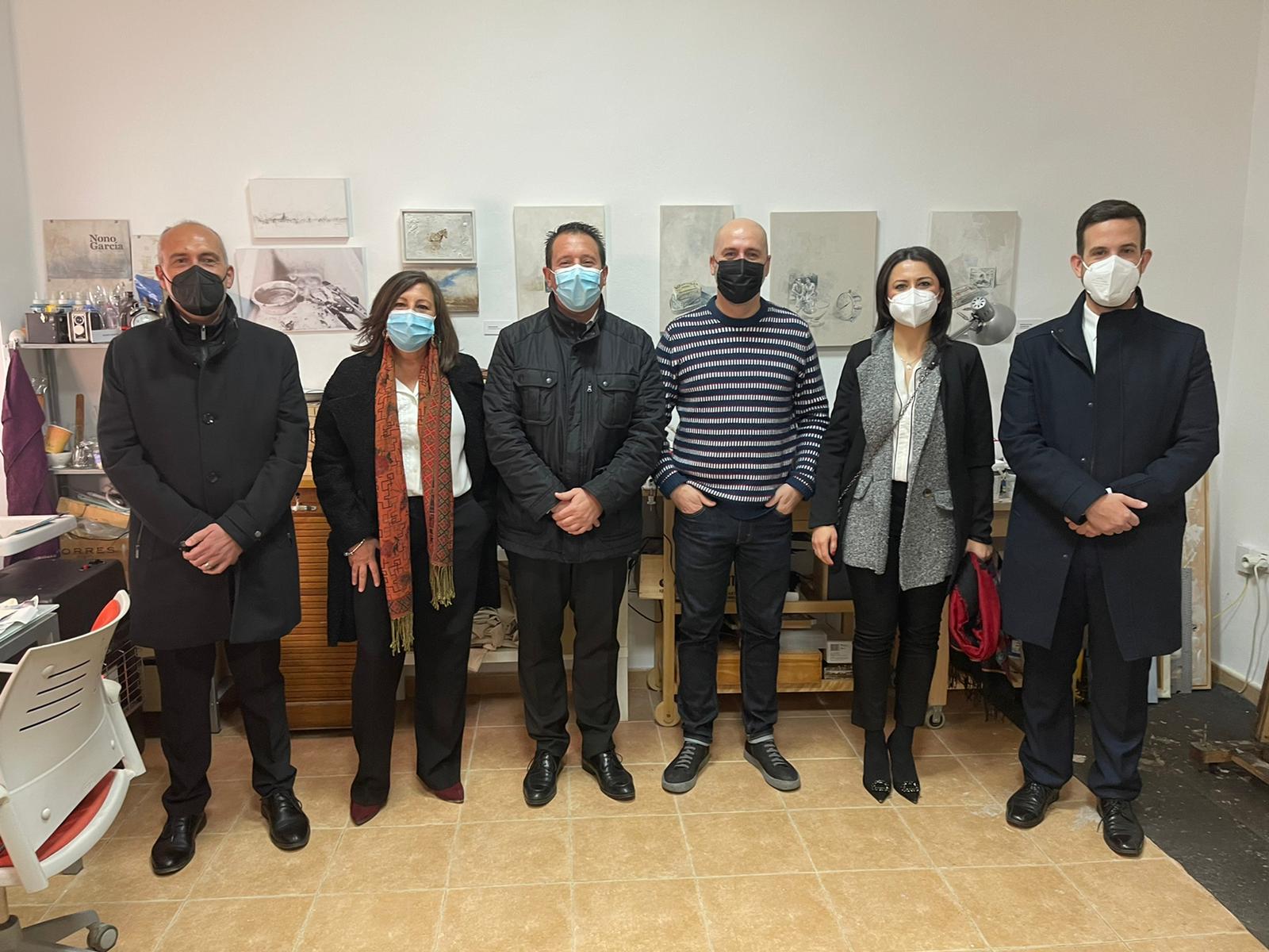l alcalde de Mula, Juan Jesús Moreno, junto a miembros del equipo de Gobierno asistían durante la mañana de este sábado al Open Studio del artista muleño Nono García.