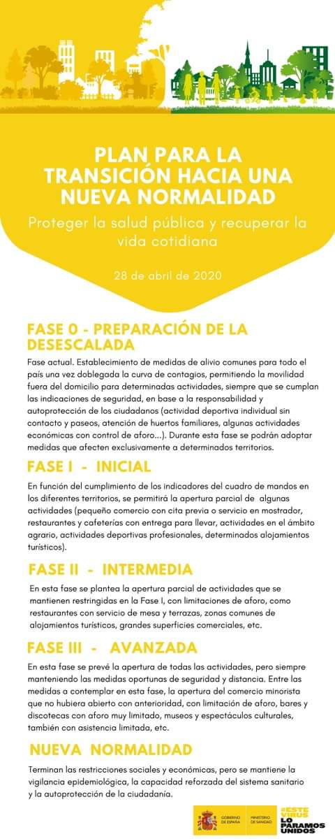El Gobierno ha aprobado un Plan de #desescalada gradual, asimétrica y coordinada para recuperar la vida cotidiana y la actividad económica, protegiendo la salud y la vida de las personas.