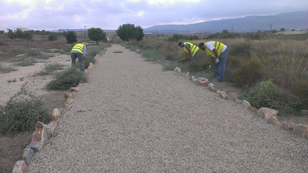 3.- Limpieza y acondicionamiento de zonas turístico-naturales: Senda del Tiempo, Vía Verde, Villaricos y entorno del Castillo. Trabajos consistentes en el desbroce, limpieza, retirada de piterones secos, adecuación de taludes y plataforma del camino de zahorra; riego y mantenimiento del arbolado existente, reforestación con pinos y arbustos para luchar contra la erosión y las escorrentías.
