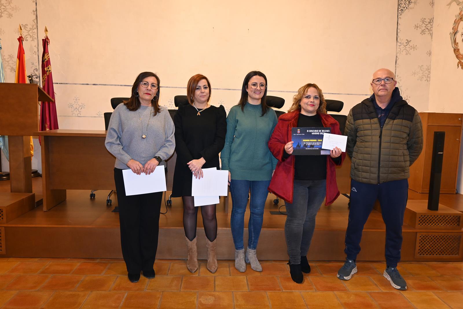 El Ayuntamiento de Mula he hecho entrega de los premios de los concursos convocados con motivo de las pasadas fiestas navideñas. El acto, celebrado en el Refectorio del Convento de San Francisco, contó con la presencia de las concejalas Alicia Zapata, Alejandra Martínez y Antonia Gabarrón y del presidente de la Asociación de Comerciantes y Hosteleros de Mula (Acohomul) Juan Boluda, quienes hicieron entrega de los reconocimientos a los premiados.