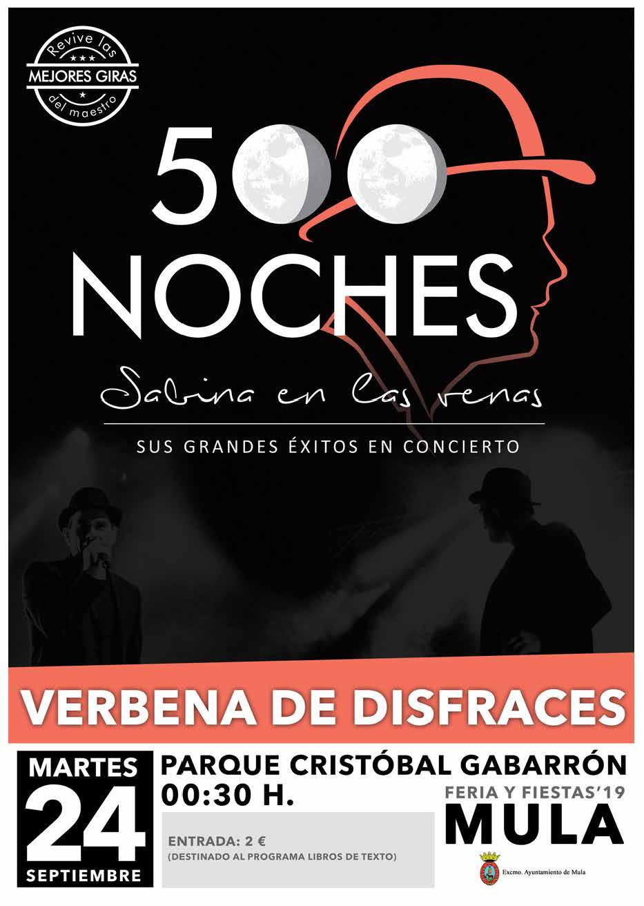 Martes 24: Concurso de Disfraces/ 500 noches Tributo a Sabina. Taquilla entrada única 2€ (la recaudación irá destinada al Banco de Libros)