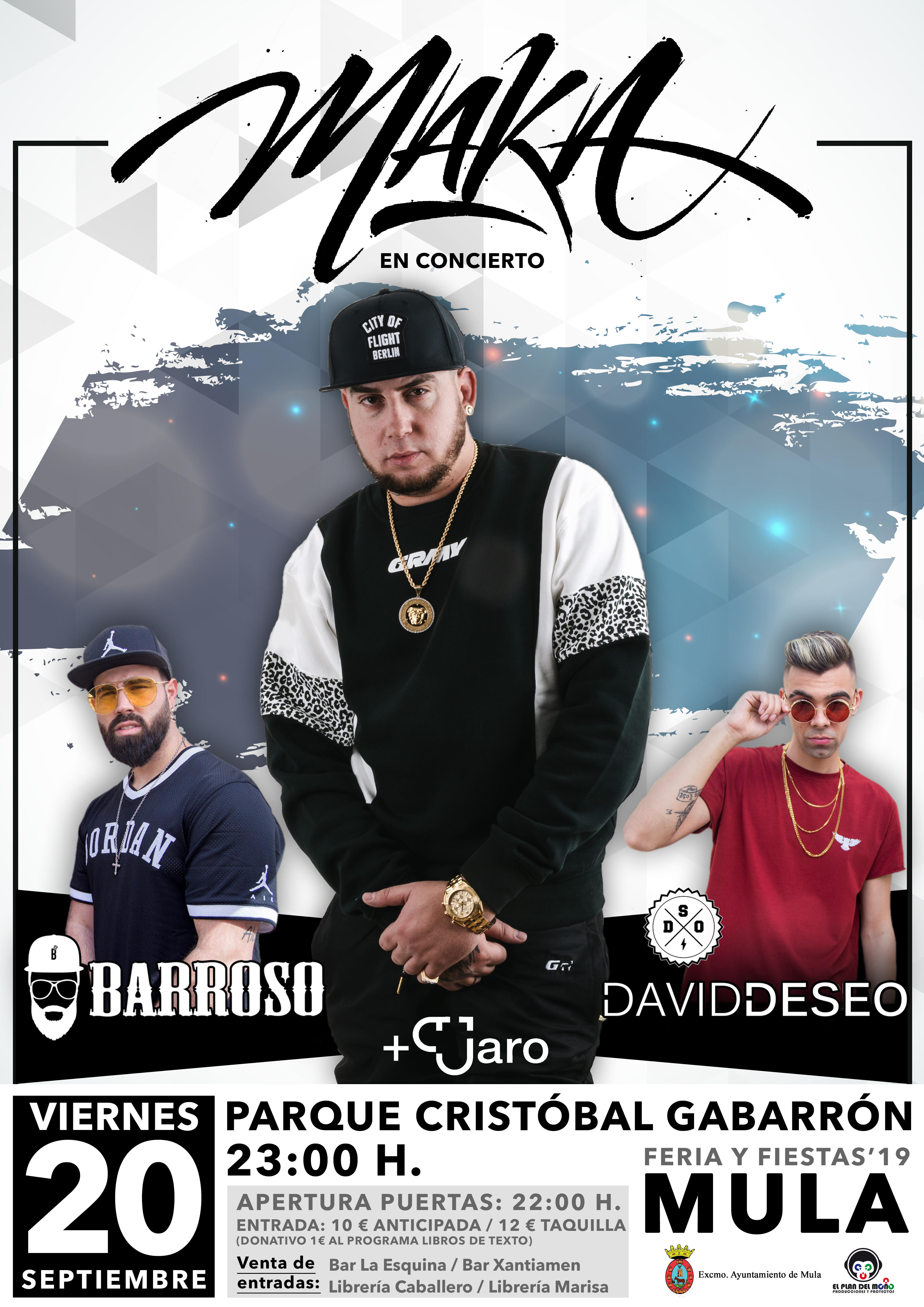 Viernes 20: Maka, Barroso y David Deseo. Anticipada 10€/Taquilla 12€