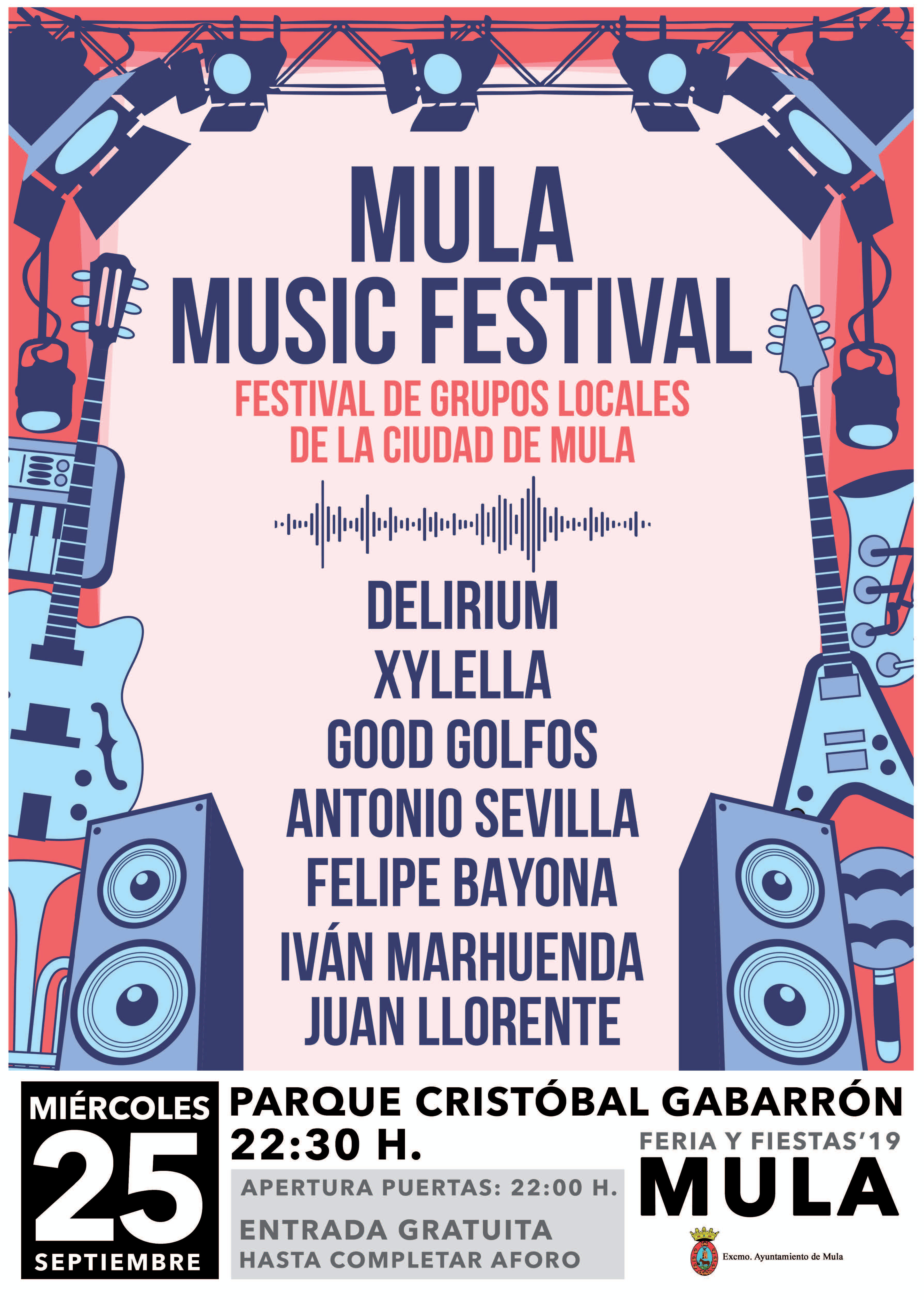 A partir de las 22:30 horas. Parque Cristóbal Gabarrón. Con las actuaciones de: Juan Llorente , Iván Marhuenda, Felipe Bayona, Antonio Sevilla, Good Golfos, Xylella y Delirium.