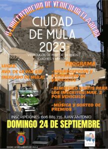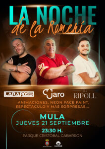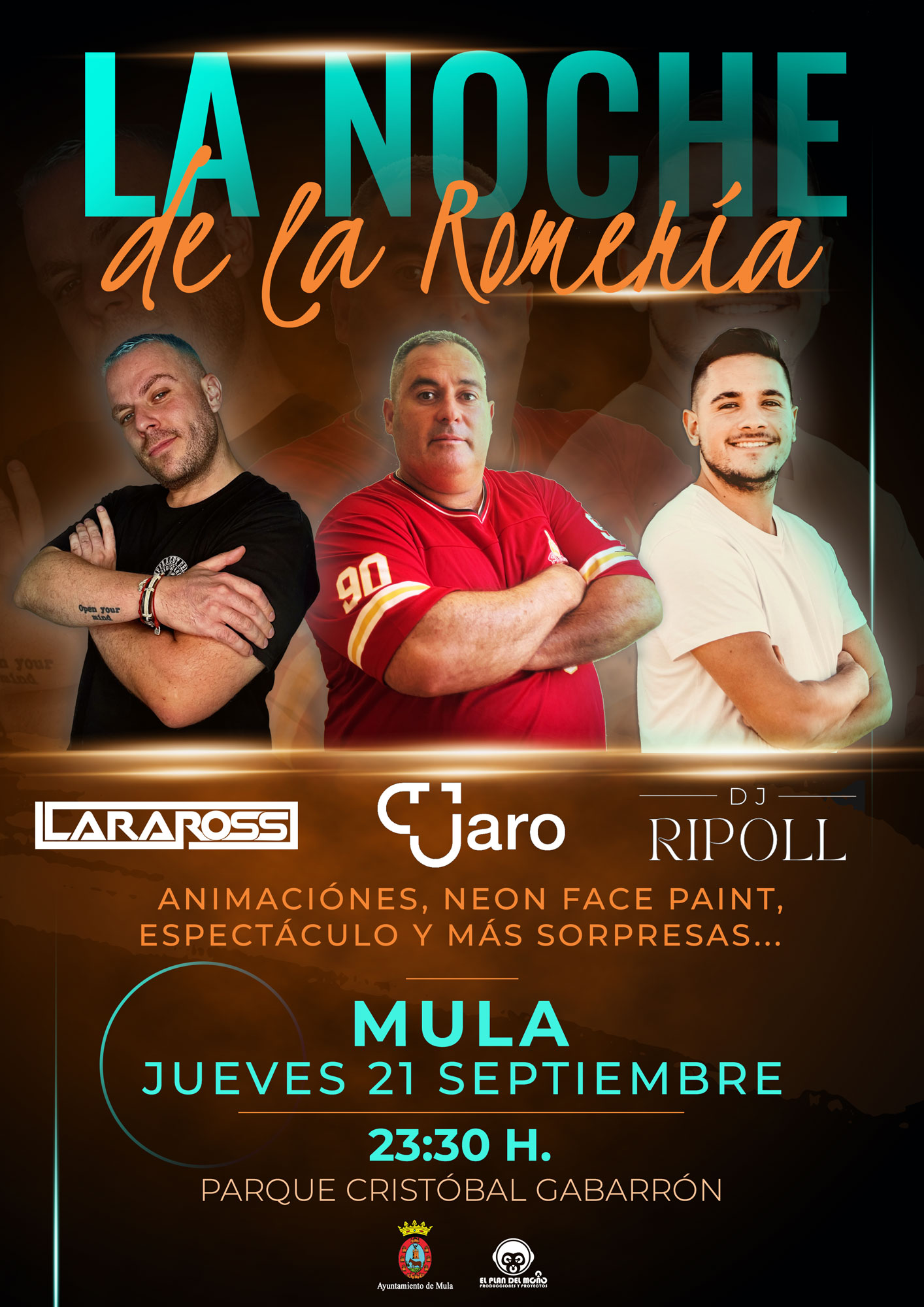 El 19 de septiembre tendrá lugar la inauguración de la Feria y Fiestas de Mula 2023, en el parque Cristóbal Gabarrón a partir del mediodía, donde los vecinos y vecinas podrán disfrutar de un ambiente festivo hasta las 20:30 horas, cuando se realizará un espectáculo piromusical y quedarán oficialmente inauguradas las Fiestas Patronales dando paso a una noche con actuaciones musicales y sesiones de DJ.