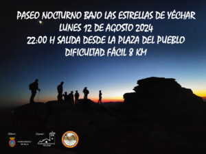- Lunes, 12 de agosto: Paseo Nocturno Bajo las Estrellas de Yéchar a las 22:00 h.