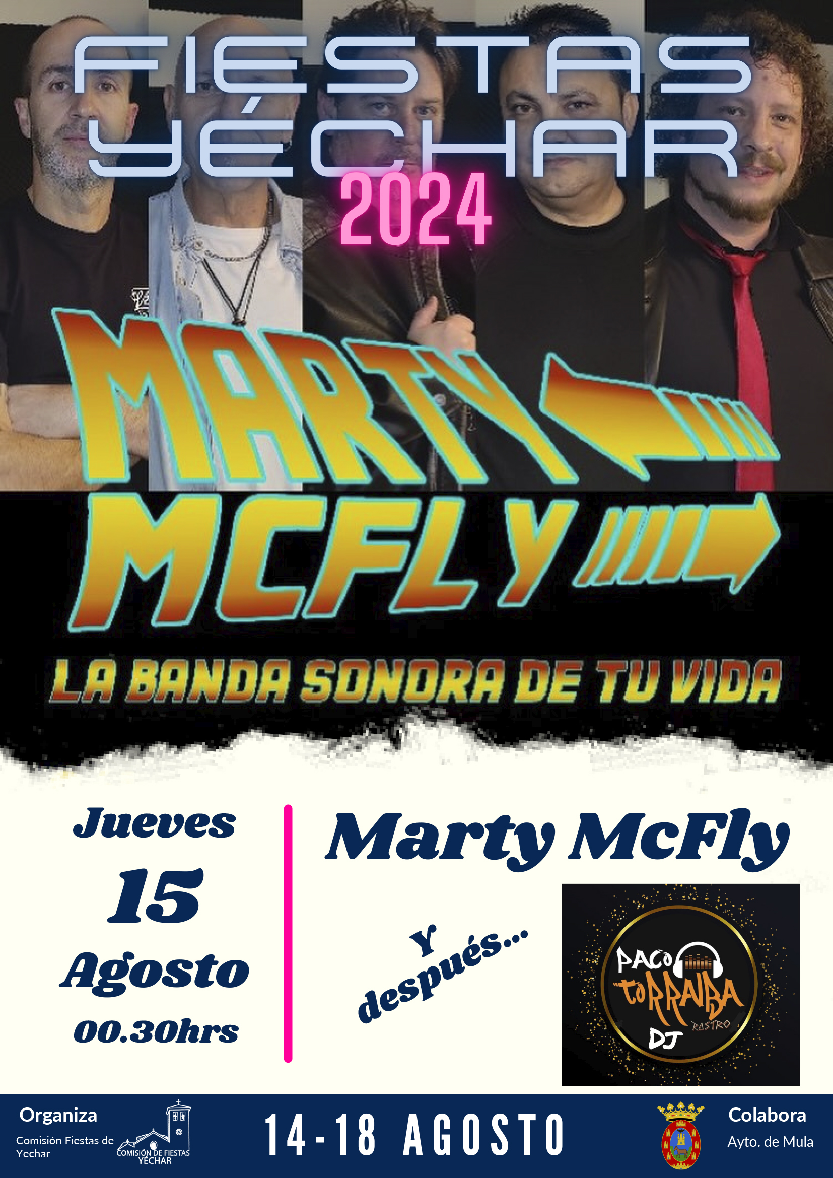 - 00:30 h: Concierto del grupo «Marty McFly» y actuación de DJ Torralba.
