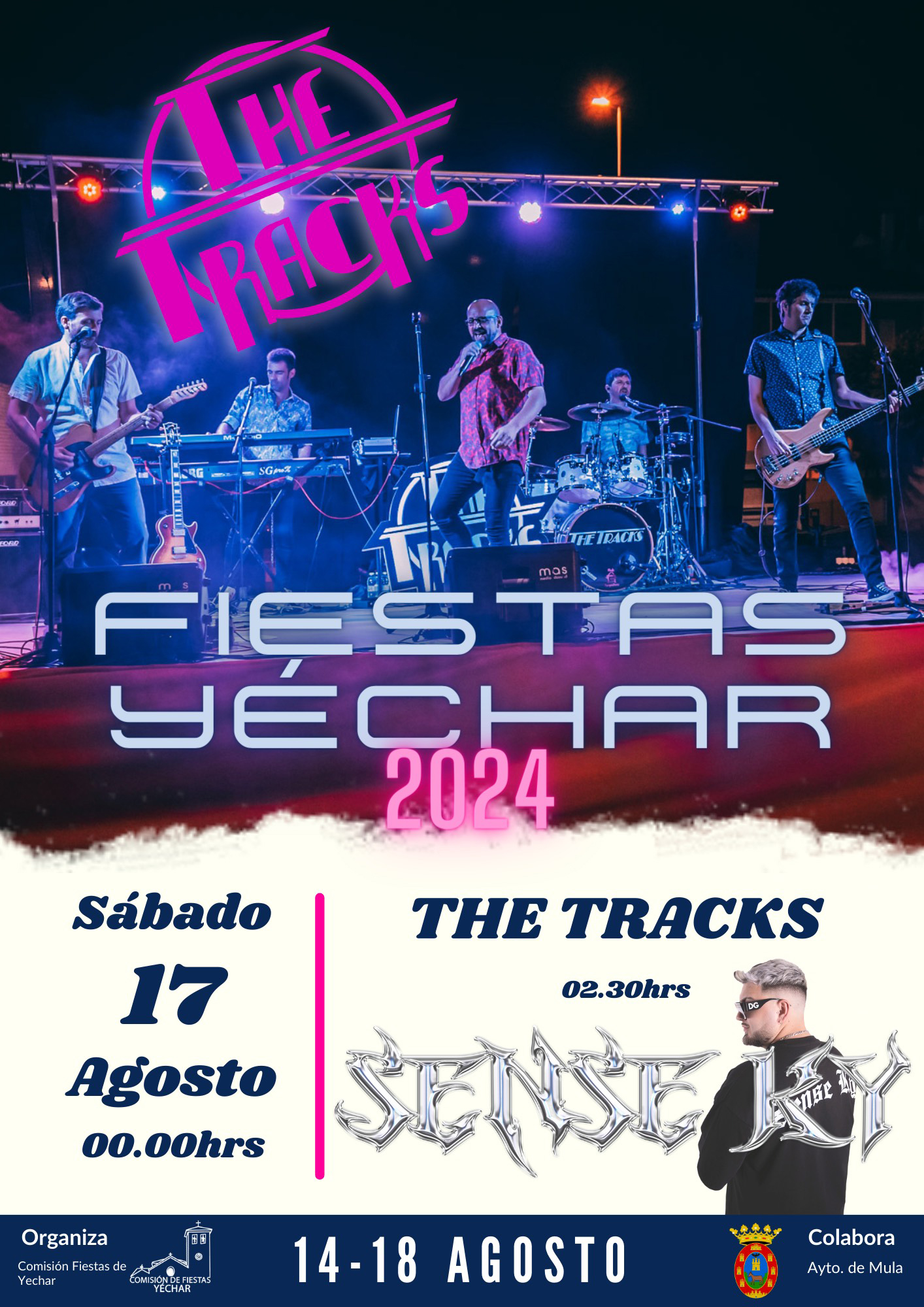 - 00:00 h: Actuación de la comparsa Nuevo Encanto de Mula, seguido del grupo «The Tracks» y DJ Sense Ky.