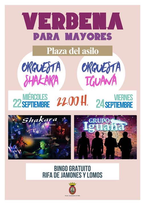 22:00 h. Verbena para mayores Orquesta Shakara.