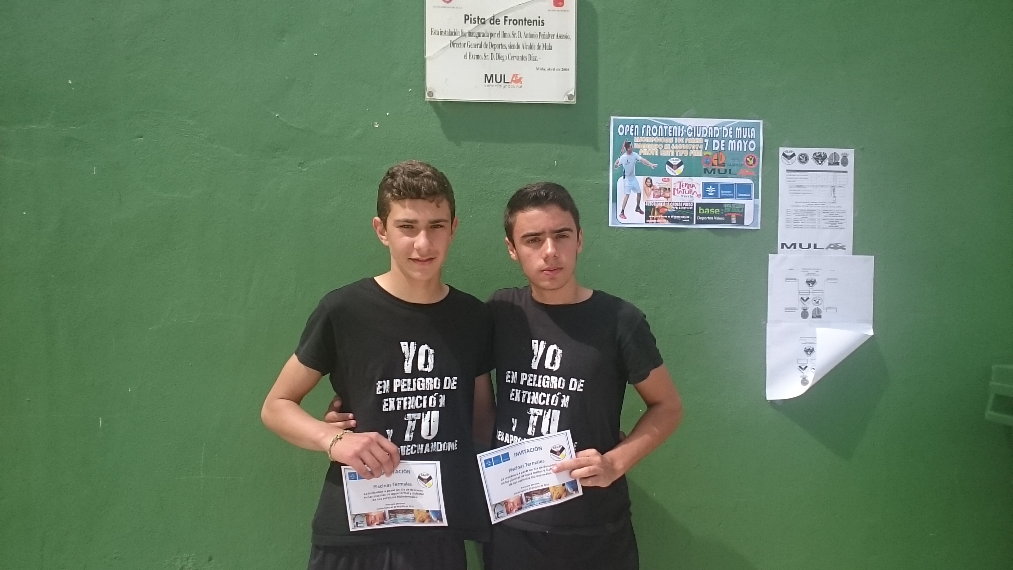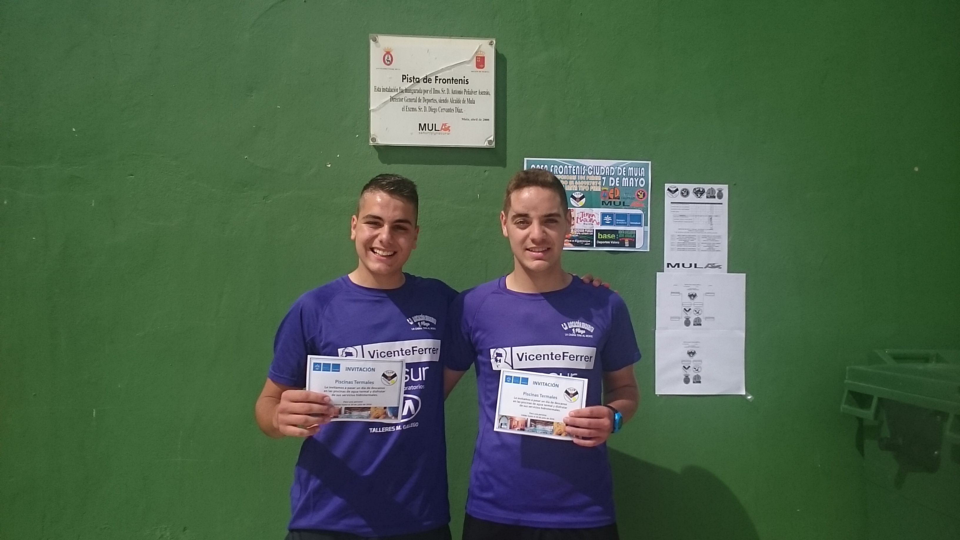 Gran éxito en el Open de Frontenis de San Isidro donde ganaron los jugadores del club frontenis Mula Diego Crespo y Ramiro en una final muy disputada 30-26 con las futuras promesas del frontenis Muleño, Adrián Corbalan y Diego,jugadores del equipo de escuelas deportivas de Mula.