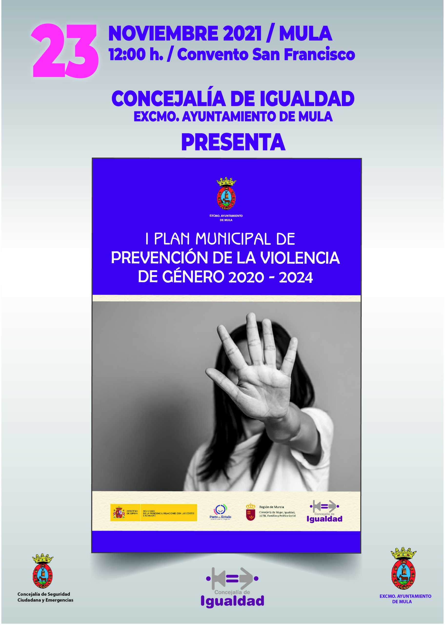 El martes día 23 se presenta el I Plan Municipal de Prevención de Violencia de Género en el refectorio del Convento San Francisco.