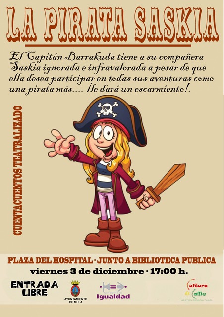 El sábado día 27 se celebra un taller de defensa personal a cargo del Club Warriors y el viernes 3 de diciembre cuentacuentos ‘La pirata Saskia’.