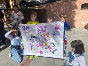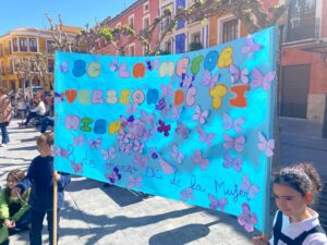 Entre las actividades organizadas con motivo del Día Internacional de la Mujer, el alumnado de 2º de Primaria de los centros educativos de Mula ha leído textos y mostrado sus pancartas reivindicando la importancia del 8M, en la plaza del Ayuntamiento de Mula. Al acto, han acudido el alcalde de Mula, Juan Jesús Moreno, la concejala de Mujer e Igualdad, Ana Belén Pérez, y miembros de la corporación municipal.