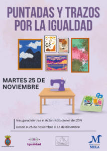 Entre los actos centrales destacan la Caminata contra la Violencia de Género, el acto institucional del 25 de noviembre con lectura del manifiesto y la inauguración de la exposición “Puntadas y trazos por la igualdad”, elaborada por la Asociación del Centro de la Mujer.