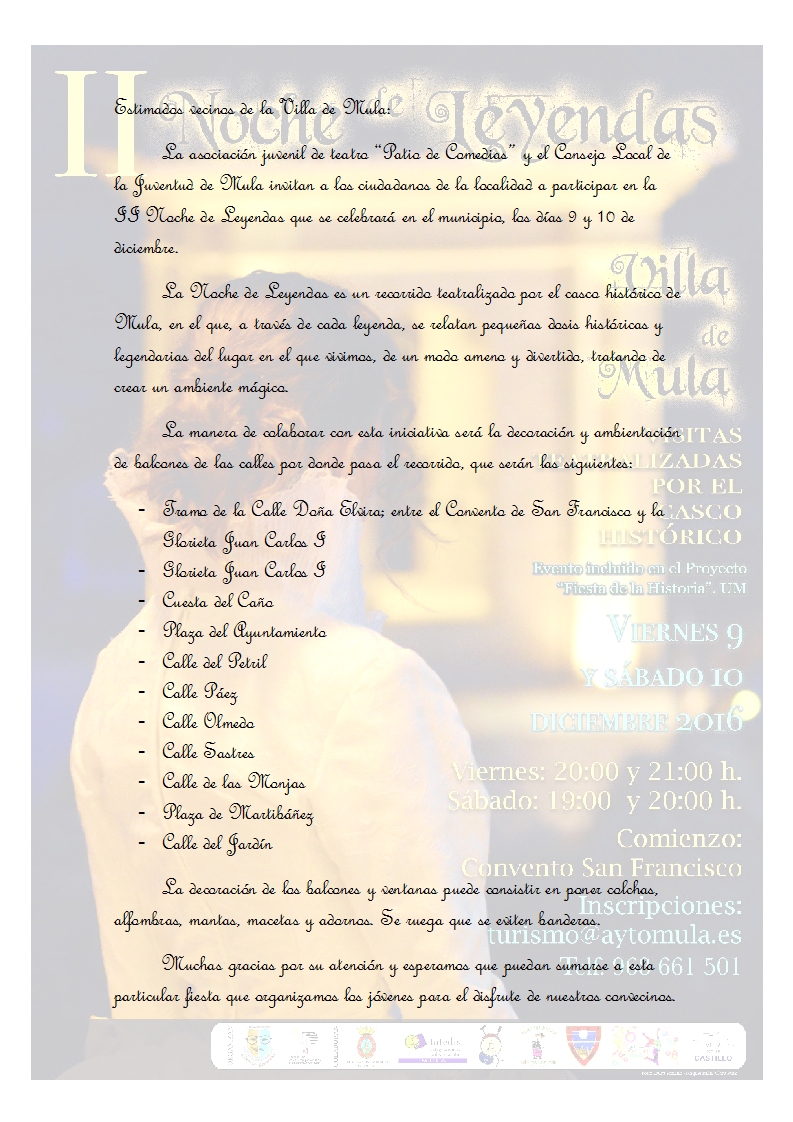 View Larger Image II Noche de Leyendas «Villa de Mula» – 9 y 10 de diciembre NOTA BALCONES NOCHE LEYENDAS " data-image-caption=" NOTA BALCONES NOCHE LEYENDAS " data-medium-file="https://i0.wp.com/mula.es/web/wp-content/uploads/2016/11/nota-balcones-leyendas.jpg?fit=212%2C300&ssl=1" data-large-file="https://i0.wp.com/mula.es/web/wp-content/uploads/2016/11/nota-balcones-leyendas.jpg?fit=724%2C1024&ssl=1" class="wp-image-22116 size-full" src="https://mula.es/web/wp-content/uploads/2016/11/nota-balcones-leyendas.jpg" alt="NOTA BALCONES NOCHE LEYENDAS" width="793" height="1122" /> NOTA BALCONES NOCHE LEYENDAS Comparte esto: Haz clic para compartir en Facebook (Se abre en una ventana nueva) Facebook Haz clic para compartir en X (Se abre en una ventana nueva) X Haz clic para compartir en Telegram (Se abre en una ventana nueva) Telegram Haz clic para compartir en WhatsApp (Se abre en una ventana nueva) WhatsApp Haz clic para imprimir (Se abre en una ventana nueva) Imprimir admin2021-05-12T20:16:44+02:00martes, 22 noviembre 2016|juventud y adolescencia, turismo|