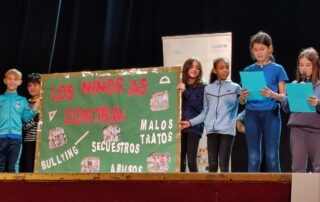 Durante la celebración, los colegios e institutos de Mula y pedanías han subido al escenario, y han mostrado los derecho de los niños, niñas y adolescentes. Además, se han comprometido a cumplirlo con acciones en sus propios centros escolares. El CEIP Sierra Espuña de Casas Nuevas ha representado el derecho a la igualdad; el CEIP Nuestra Señora del Rosario de Fuente Librilla, el derecho a la familia; el CEIP la Purísima de Yéchar, el derecho a la participación; el CEIP Ortega y Rubio de la Puebla de Mula, el derecho a la salud; el CEIP Anita Arnao, el derecho a la protección contra los abusos y la violencia; el CEIP Florentino Bayona, el derecho a un medio ambiente saludable; el colegio Santa Clara, el derecho al juego; el colegio Cristo Crucificado, el derecho a la protección contra el trabajo perjudicial; el IES Ribera de los Molinos, el derecho a la protección en caso de guerra o desastre; el IES Ortega y Rubio, el derecho a la discapacidad.