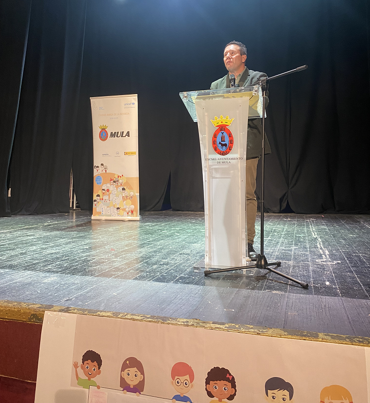 “Desde el Ayuntamiento de Mula presentamos nuestro compromiso para facilitar que todos los niños y adolescentes, cualquiera que sea su realidad personal y familiar, puedan acceder en condiciones de igualdad a los servicios y recursos que ponemos a su disposición. y también, que puedan participar y aportar su grano de arena a la hora de definir el presente y el futuro de nuestra ciudad, del que ellos, en pocos años, serán los principales protagonistas”, ha dicho Juan Jesús Moreno a los y las participantes del evento. Asimismo, el primer edil ha resaltado que “los derechos reconocidos a la infancia son los pilares básicos para construir una sociedad mejor, dotada de recursos y formada por personas libres y dignas”. En la misma línea, el alcalde ha hablado del reconocimiento de Mula como Ciudad Amiga de la Infancia, “una acreditación que evidencia que el Ayuntamiento de Mula pone en el centro de sus decisiones políticas a los niños, niñas y adolescentes”, ha expresado.
