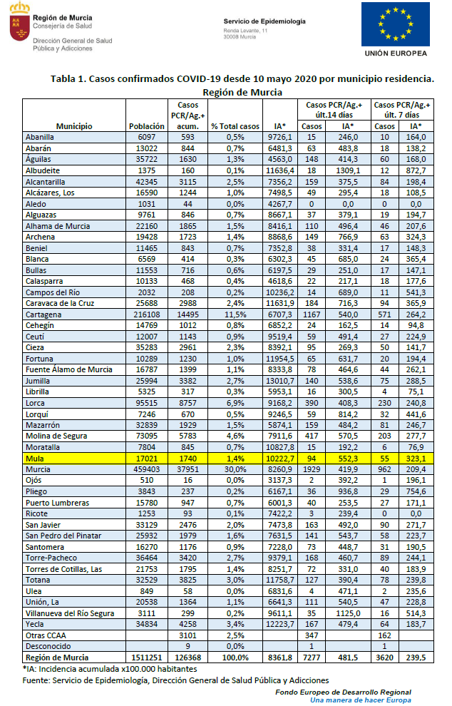 Enlace al Centro de datos COVID-19: https://www.datoscovid.es/pages/murcia#