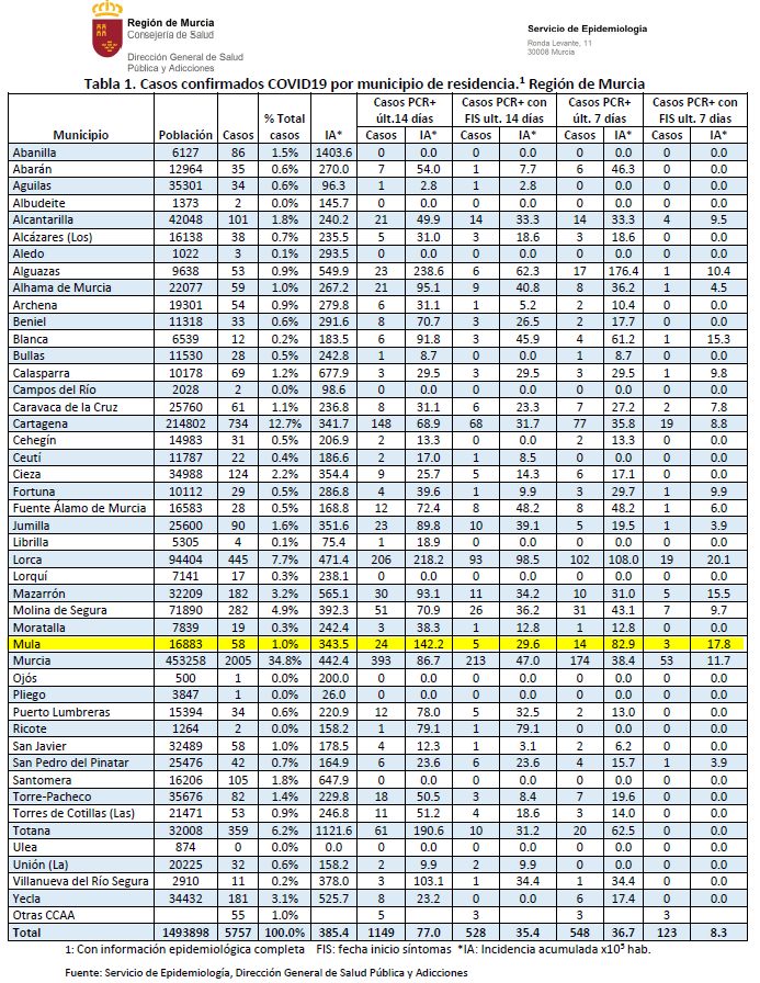 View Larger Image Informe de situación COVID-19 en la Región de Murcia a 20 de agosto de 2020 Informe epidemiológico diario de 20 de agosto de 2020. Incluye casos por municipio. Informe completo de situación COVID-19 en la Región de Murcia a 18 de agosto de 2020. Comparte esto: Comparte en Facebook (Se abre en una ventana nueva) Facebook Compartir en X (Se abre en una ventana nueva) X Compartir en Telegram (Se abre en una ventana nueva) Telegram Compartir en WhatsApp (Se abre en una ventana nueva) WhatsApp Imprimir (Se abre en una ventana nueva) Imprimir admin2021-05-12T20:08:43+02:00viernes, 21 agosto 2020|coronavirus|