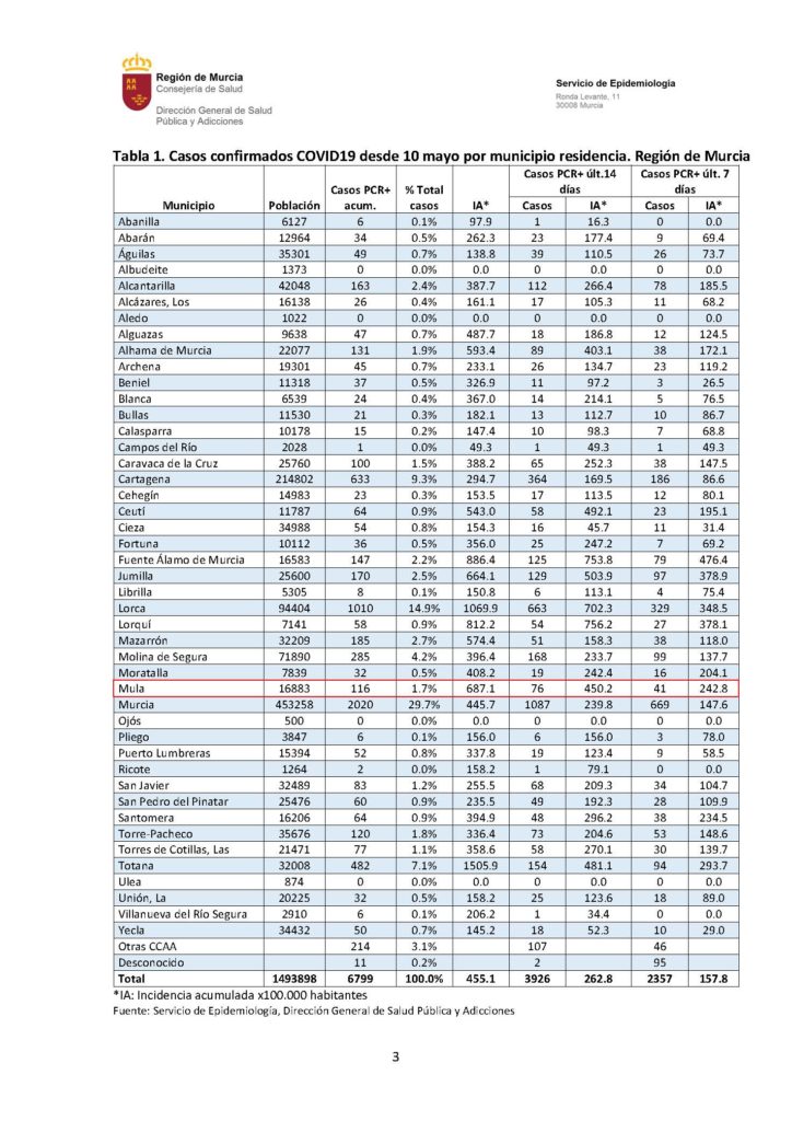 View Larger Image Informe de situación COVID-19 en la Región de Murcia a 3 de septiembre de 2020 Informe completo de situación COVID-19 en la Región de Murcia Comparte esto: Comparte en Facebook (Se abre en una ventana nueva) Facebook Compartir en X (Se abre en una ventana nueva) X Compartir en Telegram (Se abre en una ventana nueva) Telegram Compartir en WhatsApp (Se abre en una ventana nueva) WhatsApp Imprimir (Se abre en una ventana nueva) Imprimir Rosario Martínez2021-05-12T20:08:36+02:00jueves, 3 septiembre 2020|coronavirus|