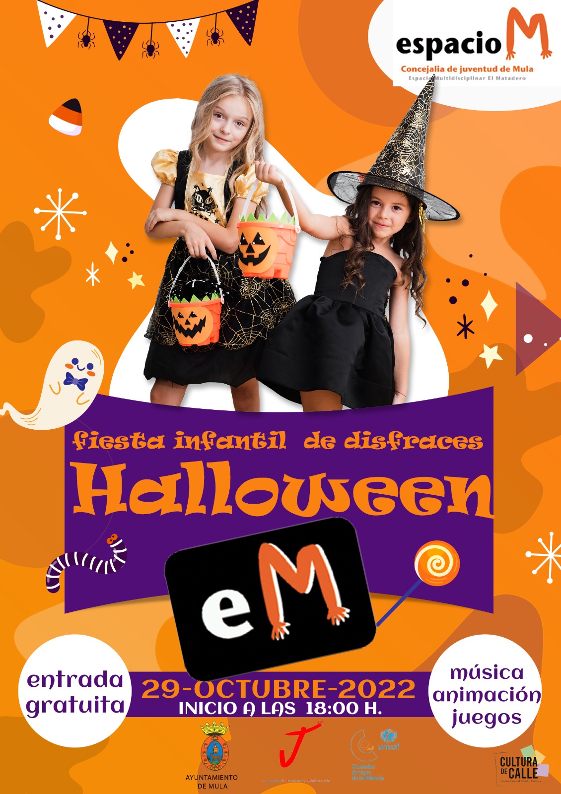 Destacan la Fiesta Infantil de disfraces que se celebra a partir de las 18.00 horas dirigido para los más pequeños Habrá mucha música y juegos para pasar una tarde de diversión.