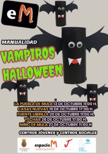 Mula, 10 de octubre de 2024 – La concejalía de Juventud del Ayuntamiento de Mula da comienzo a la programación de la ludoteca y talleres en las pedanías de Mula durante el mes de octubre. Las actividades incluirán una ludoteca con juegos de mesa, dibujos para colorear, consolas y, especialmente para Halloween, un taller de manualidades para crear “Vampiros” a partir de materiales reciclados.