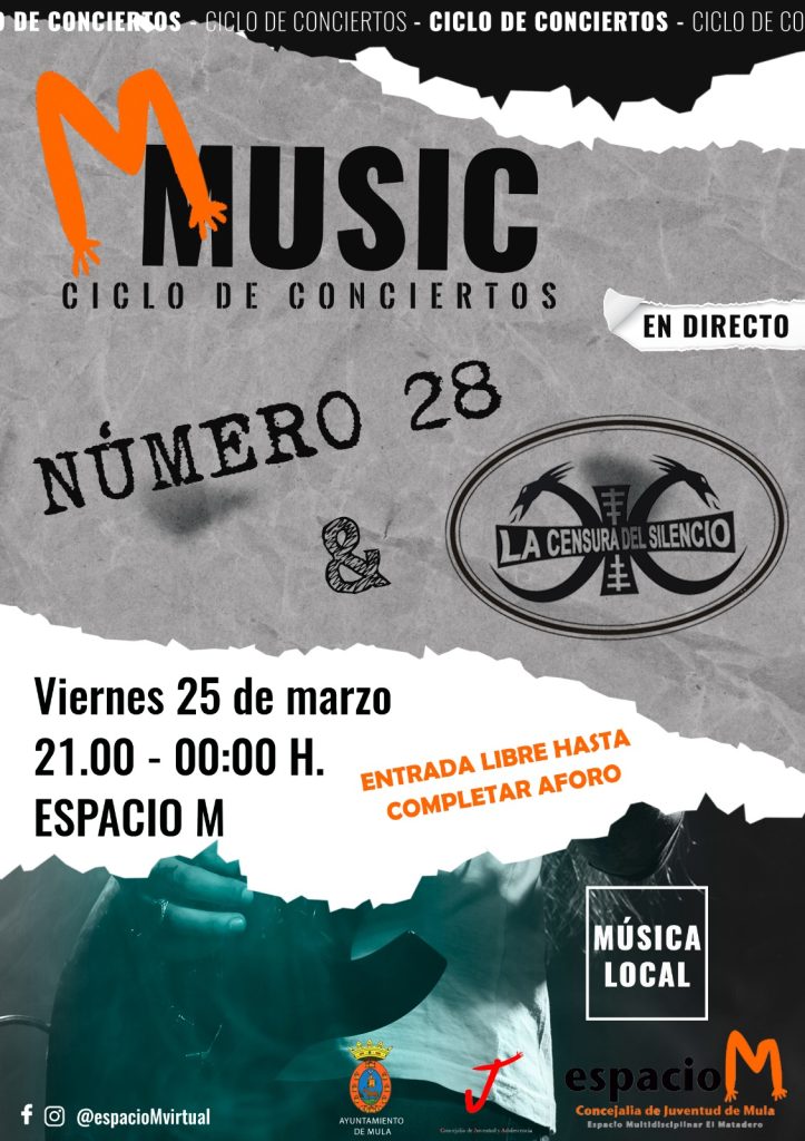 El ciclo lo abrirán los grupos Número 28 y la Censura del Silencio el próximo viernes 25 de marzo a las 21:00 h en el Espacio M. Tras ellos actuarán el resto de grupos locales en este ciclo, que finaliza en junio. Todos los participantes grabarán un CD subvencionado por la propia Concejalía, para ello se utilizará la sala de grabación que se encuentra en las instalaciones del Espacio M, aprovechando así los recursos propios para el fomento de la cultura juvenil.