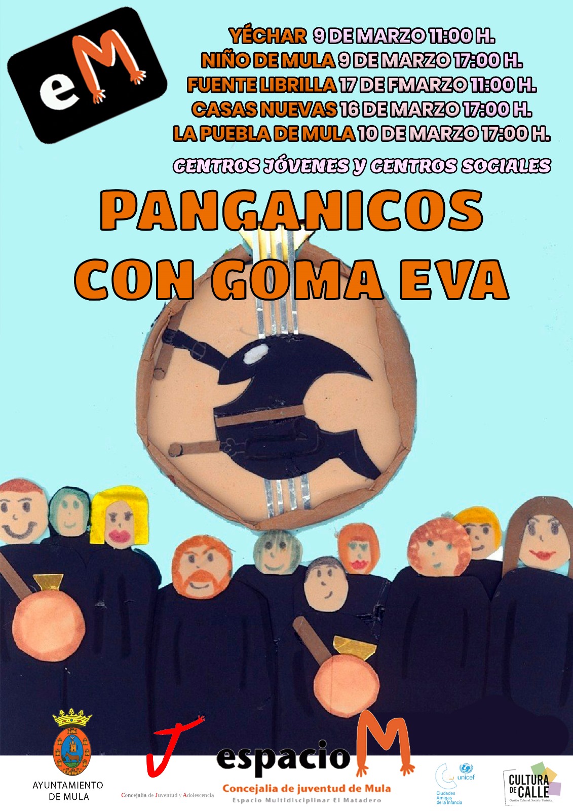 Además, con motivo de La Noche de los Tambores, se va a realizar el taller Panganicos con goma eva, dirigida a menores a partir de los 3 años también gratis. Ambas iniciativas se realizarán en el Centro Social o Centro Joven de cada pedanía.