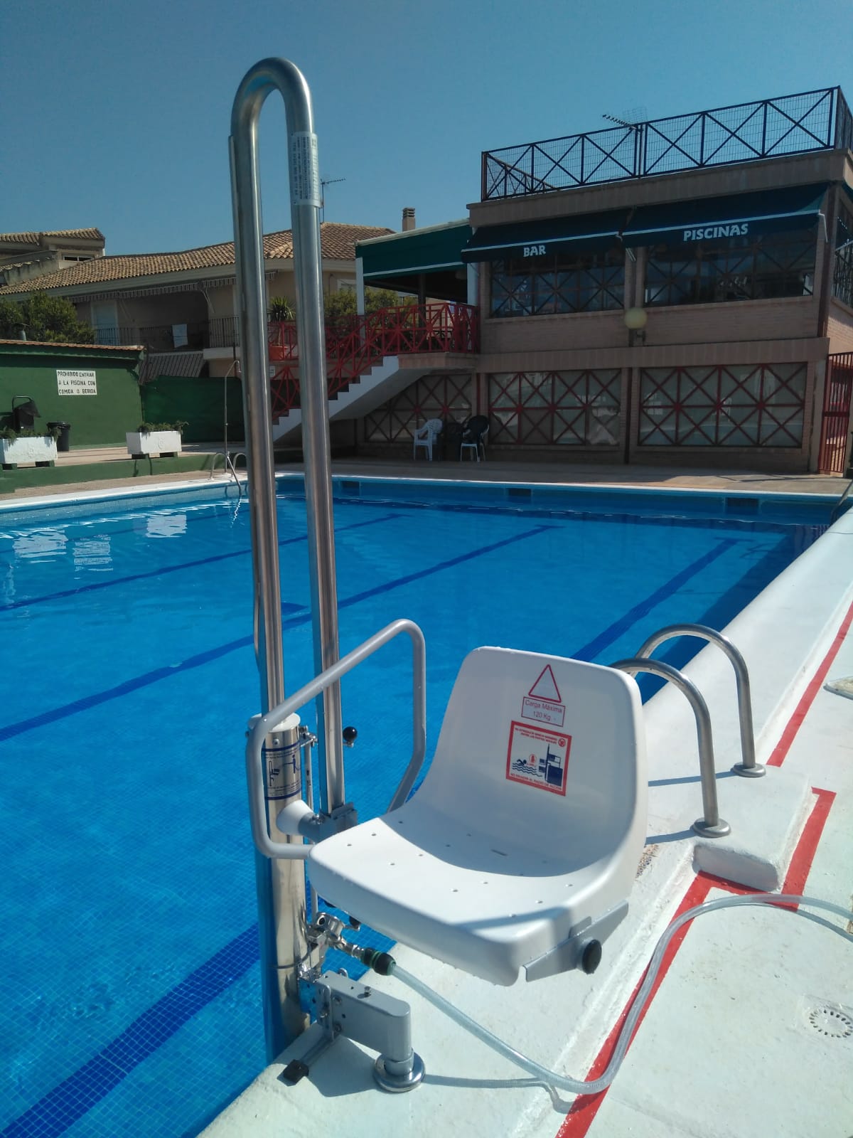 La Concejalía de Servicios ha equipado el vaso mediano de las piscinas municipales con un elevador hidráulico que facilita el acceso y la salida del agua para que cualquier persona pueda disfrutar del baño durante este verano.