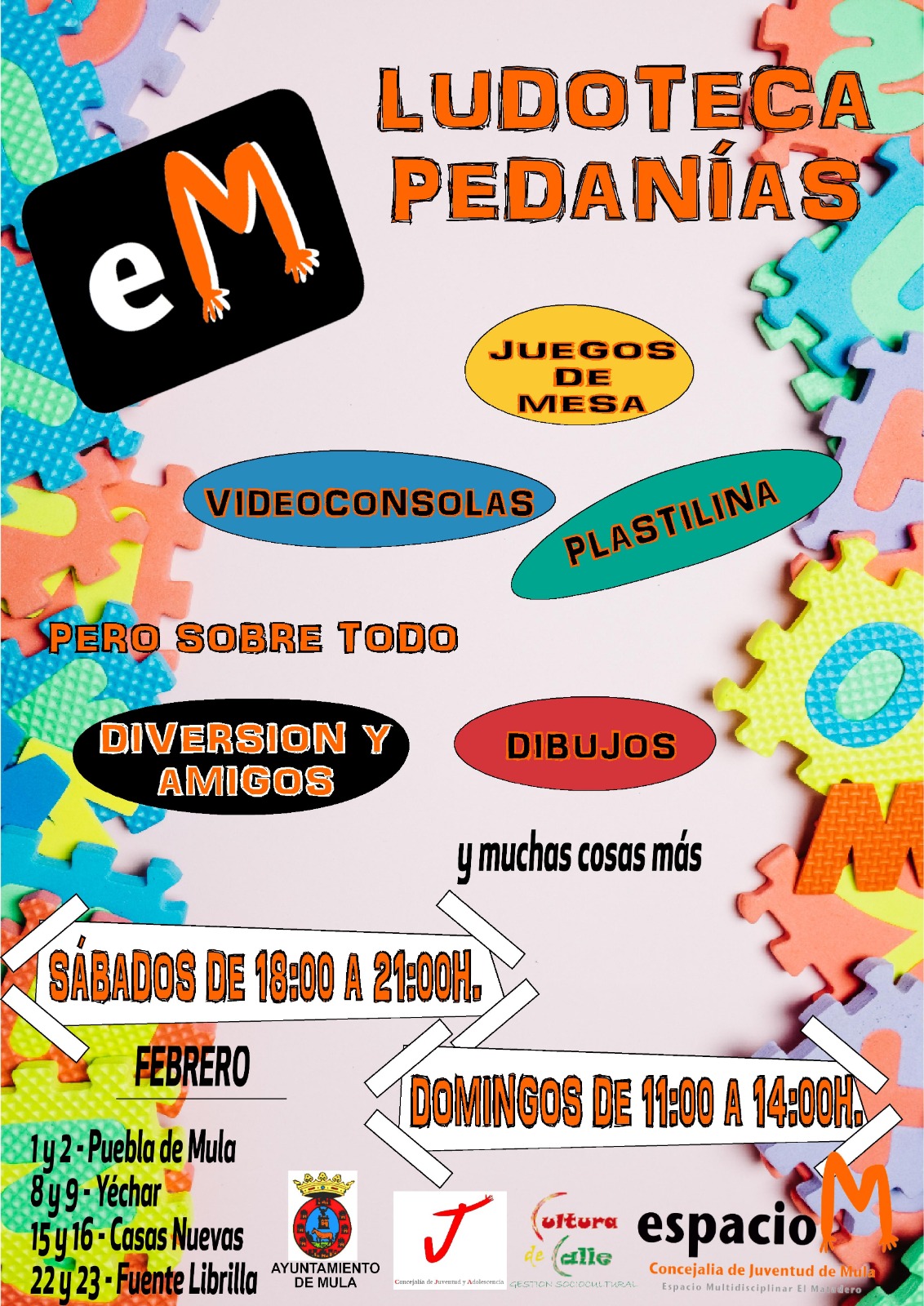 View Larger Image Ludoteca en Pedanías: febrero 2020 Comparte esto: Comparte en Facebook (Se abre en una ventana nueva) Facebook Compartir en X (Se abre en una ventana nueva) X Compartir en Telegram (Se abre en una ventana nueva) Telegram Compartir en WhatsApp (Se abre en una ventana nueva) WhatsApp Imprimir (Se abre en una ventana nueva) Imprimir Rosario Martínez2020-02-05T08:52:02+01:00miércoles, 5 febrero 2020|juventud y adolescencia, pedanías|